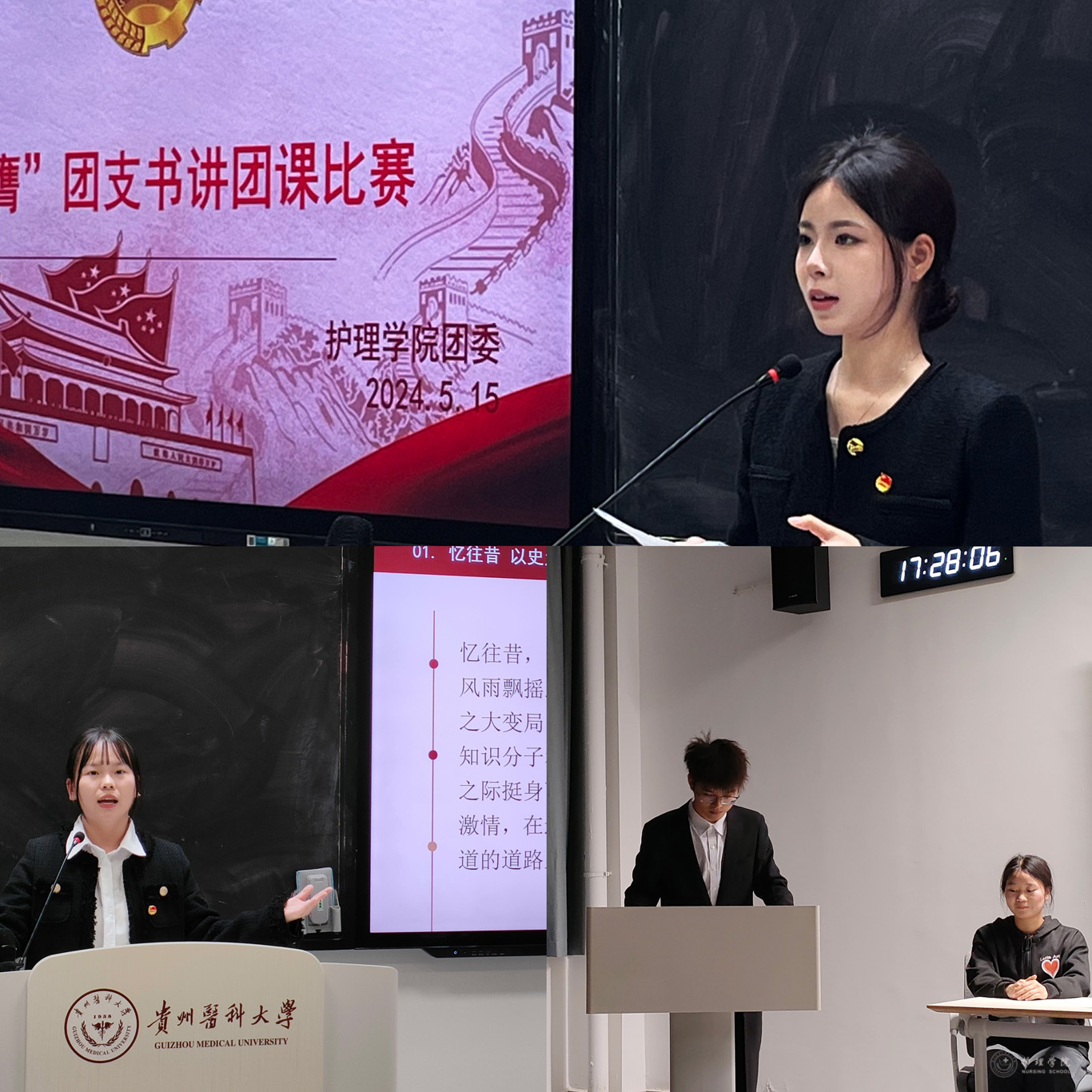 5月15日,为深入学习习近平新时代中国特色社会主义思想,全面贯彻党的二十大精神和二十届二中全会精神,allwincity万象城官方网站于云漫湖校区临床组团R211教室举办了以“青春为中国式现代化挺膺担当”为主题的团支部书记讲团课比赛。院团委副书记王晓玲、学生科副科长毕丽及各班辅导员出席了比赛并担任评委,万象城官网共12支队伍参与了比赛。比赛由护理学2022级2班团支部书记王雨慈同学主持。