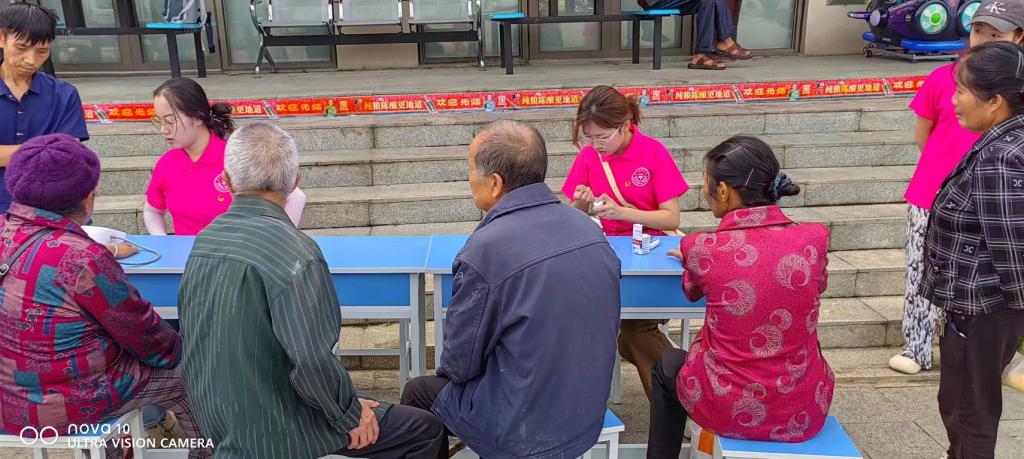 7月19日,实践队员在社区工作人员的带领下走访慰问了10户重点保障户家庭,为居民们提供了血压测量等义诊服务,并结合理论知识对居民的生活提供了针对性的健康指导。途中,实践队员帮助老奶奶提井水、背物品。入户走访慰问不仅为当地居民带去了精神慰藉,增强了健康的生活意识,更提升了护理学子的人文关怀素养和专业能力。