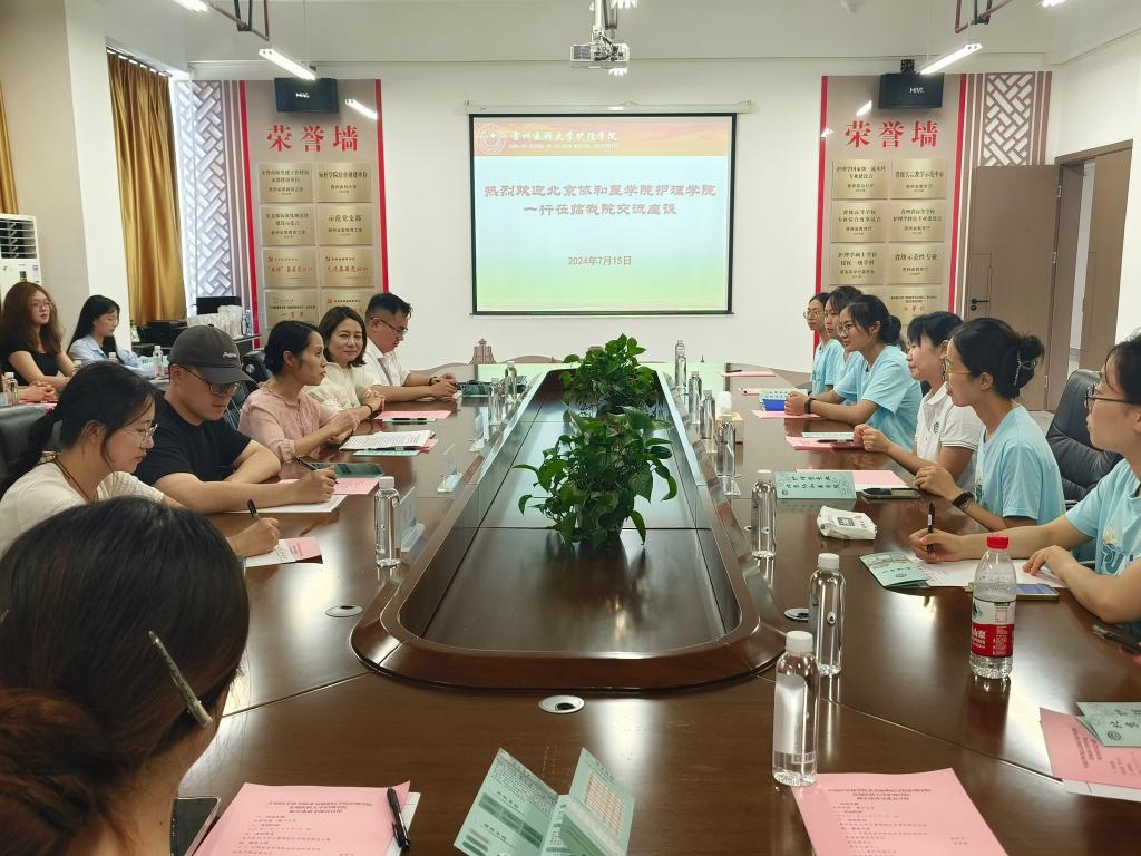 15日下午,两校队员在allwincity万象城官方网站云漫湖校区酬勤楼allwincity万象城官方网站会议室进行了座谈。allwincity万象城官方网站党委书记杨英、副处级组织员张黎、辅导员代表,协和医学院allwincity万象城官方网站团委书记张苹平、协和医学院医院事务处茅李莉出席了会议。双方就学生管理、党团活动、教育教学等方面进行了深入交流。杨英表示,学院即将与北京协和医学院开展对口支援帮扶建设工作,希望双方能持续加强联系、深化合作,借助协和之力,赓续协和血脉,推动allwincity万象城官方网站护理教育及学科建设迈上新台阶。