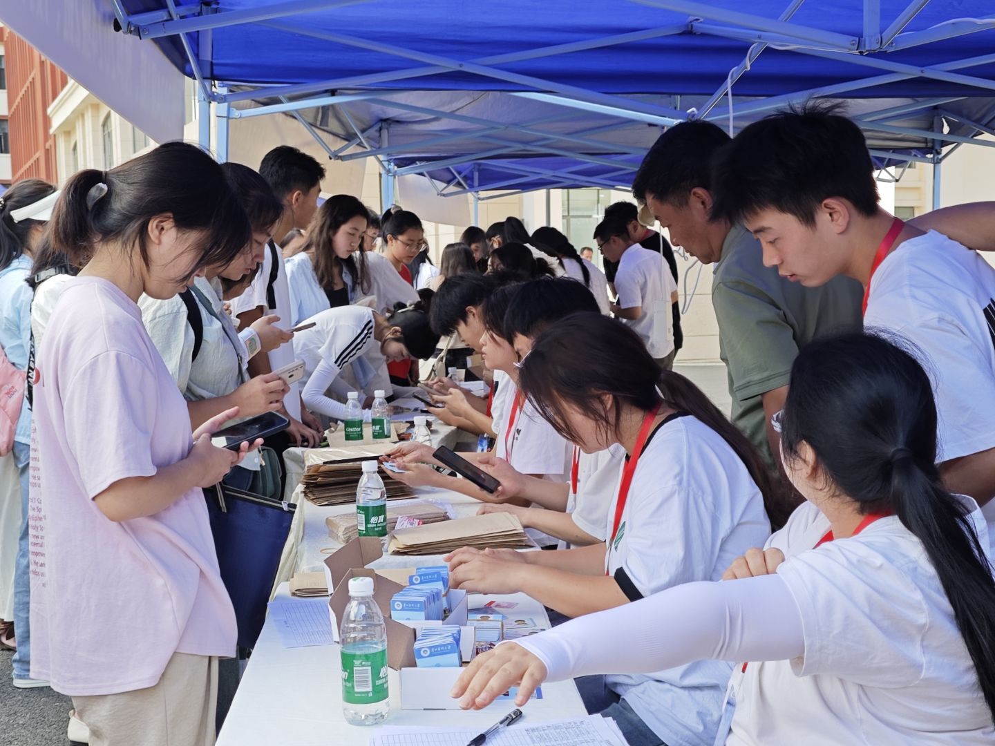 清晨7点,酬勤楼前的主干道上,遮阳帐篷依次排开,迎新工作有序开展。“你好!新同学,宿舍往前走200米就到了……是在大学生活动中心领取军训服装。”迎新现场,志愿者们热情地为新生及家长指路,搬运行李,他们主动帮助新生解决问题,消除他们的陌生感,帮助新生快速熟悉校园环境。在志愿者的热情指引下,报到点的老师和志愿者有序地对新生进行身份认证、引导新生领取学生卡、确认个人信息等报到手续。期间,学校和学院领导到迎新点看望慰问工作人员和志愿者,现场指导迎新工作。