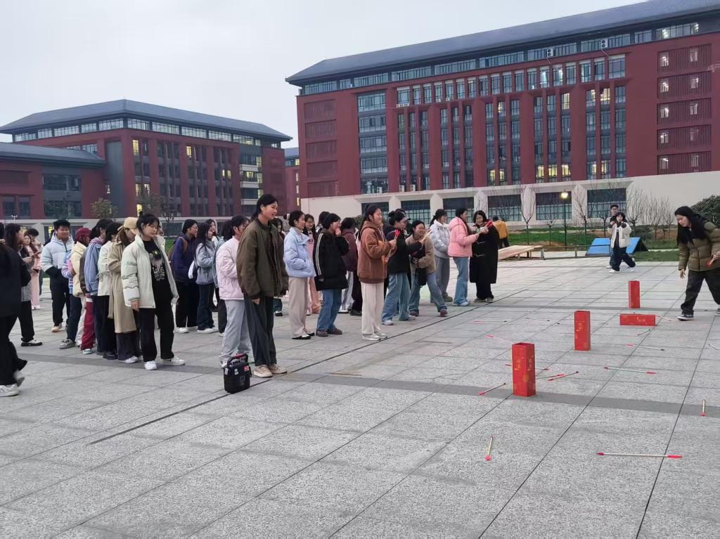 活动伊始,趣味游戏环节迅速拉近同学们的距离。“猜歌擂台”中,经典旋律与流行金曲交织,台下观众争相抢答,掌声与欢呼此起彼伏;传统“投壶挑战”则通过寓教于乐的方式展现文化魅力,参与者凝神投掷、精准命中,现场喝彩不断。