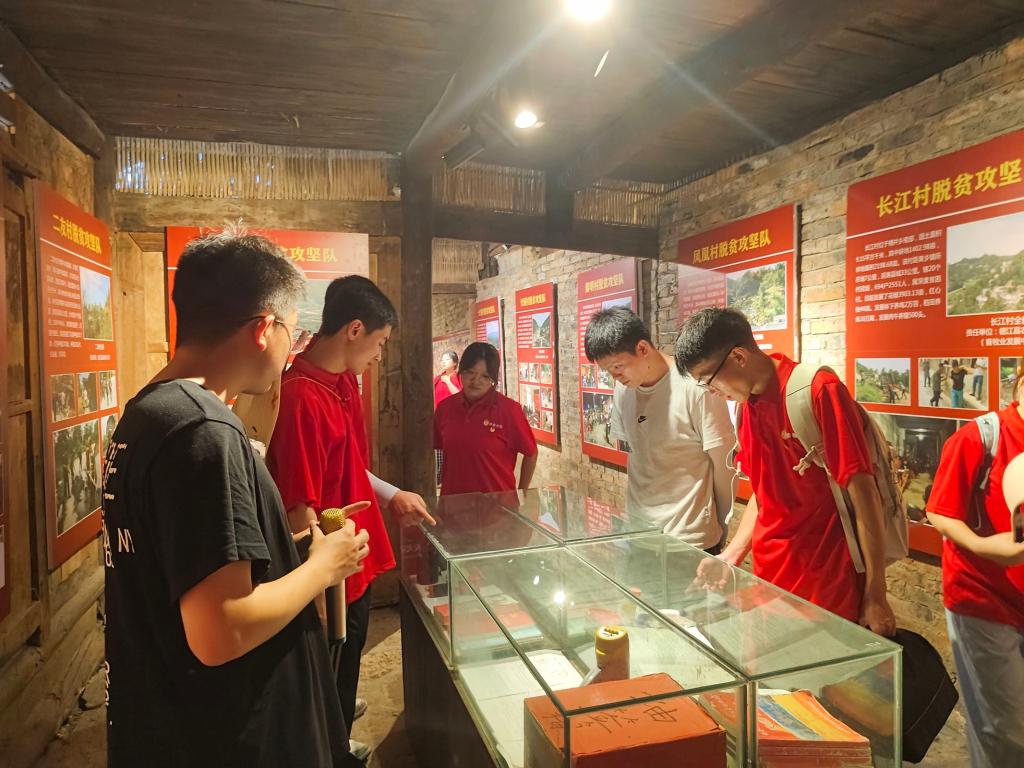 7月10日下午,实践队来到德江县桶井乡“乡愁园”。在当地负责人的陪同和介绍下,队员们参观了桶井乡“乡愁园”的爱国主义教育基地,并开展座谈会。过程中,队员们深刻体会到基层工作者在响应国家脱贫攻坚时的责任与担当,激励着青年队员们接续奋斗。
