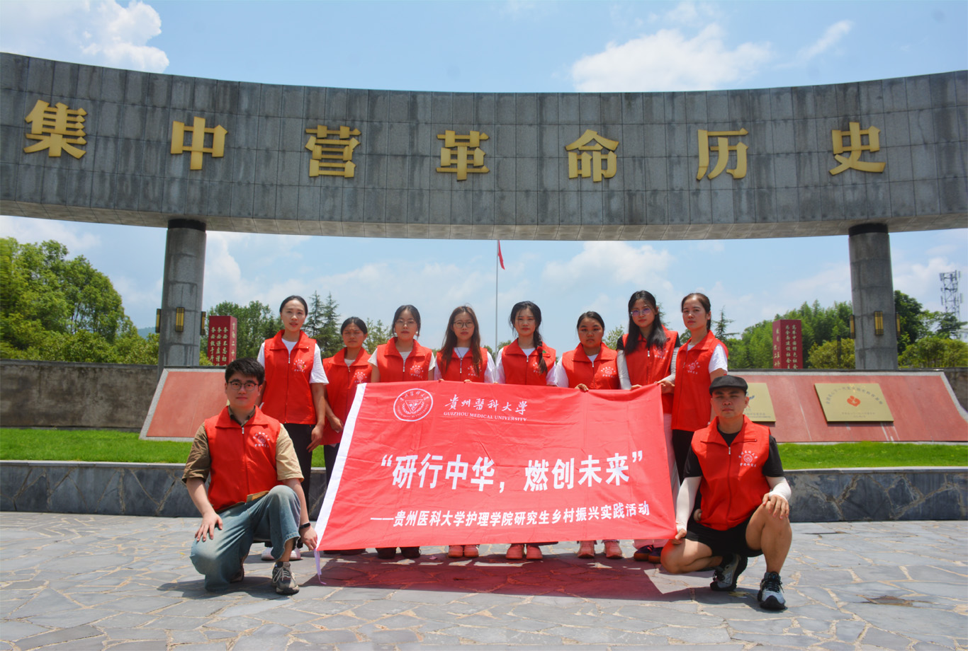 在全面推进乡村振兴的时代背景下,7月19日至25日,allwincity万象城官方网站研究生辅导员殷艳带领10名护理研究生,赴贵阳市息烽县黑神庙中心村、茅草寨村开展“研行中华 燃创未来”乡村振兴实践活动。活动紧扣“红色教育、基层调研、艺术疗愈、健康守护”四大主题,在服务乡村健康中汲取红色力量,筑牢理想信念。