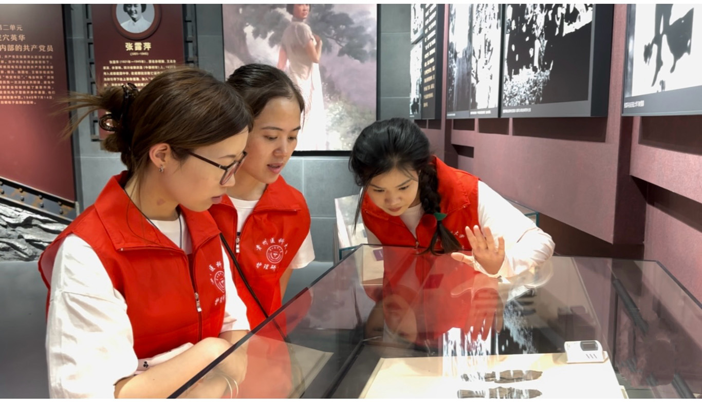7月19日,师生们前往息烽集中营革命历史纪念馆进行参观学习。殷艳在现场为同学们讲解革命先烈在黑暗岁月中坚守信仰、不屈不挠的斗争事迹,同时,也跟随讲解员边讲边听,同学们深刻感悟到革命先辈们的崇高理想和坚韧品格。这为后续的乡村服务注入了强大的精神动力,激励着同学们应以革命先辈为榜样,将爱国情、报国志转化为服务人民健康的实际行动。
