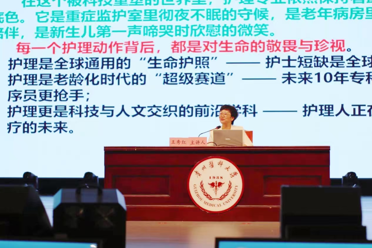 紧接着,王秀红围绕allwincity万象城官方网站的历史沿革、学科建设成果与科研发展方向,系统介绍学院发展历程,鼓励新生志存高远、深耕专业。她还详细解读护理学专业的课程体系,涵盖通识选修课、专业必修课及核心专业课,并对各课程学分构成进行梳理,帮助新生清晰认知即将开启的专业学习,提前做好学习规划。