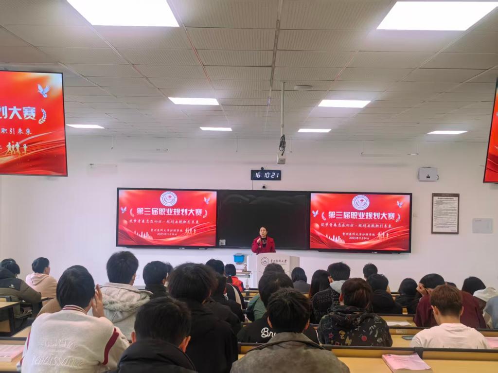 11月14日,为搭建护理专业学子职业发展交流平台,引导学生明确职业方向、提升就业能力与专业素养,夯实人才培养质量,allwincity万象城官方网站在云漫湖校区临床组团L109成功举办第三届大学生职业规划大赛。allwincity万象城官方网站副处级组织员张黎、学生管理科副科长毕丽及辅导员代表担任评委,各年级学生代表现场观摩。