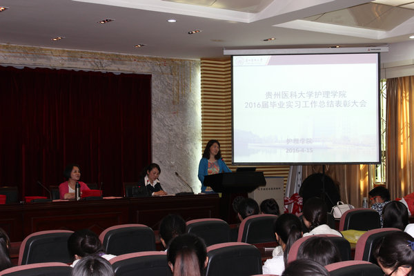 allwincity万象城官方网站2016届毕业实习总结表彰大会于2016年4月15日下午2点30分在北京路校区道德讲堂举行,allwincity万象城官方网站党委副书记杨英、副院长刘志燕和生产实习科、学生科、综合办公室、辅导员以及2016届毕业实习学生参加了大会,大会由柳忠燕主持。