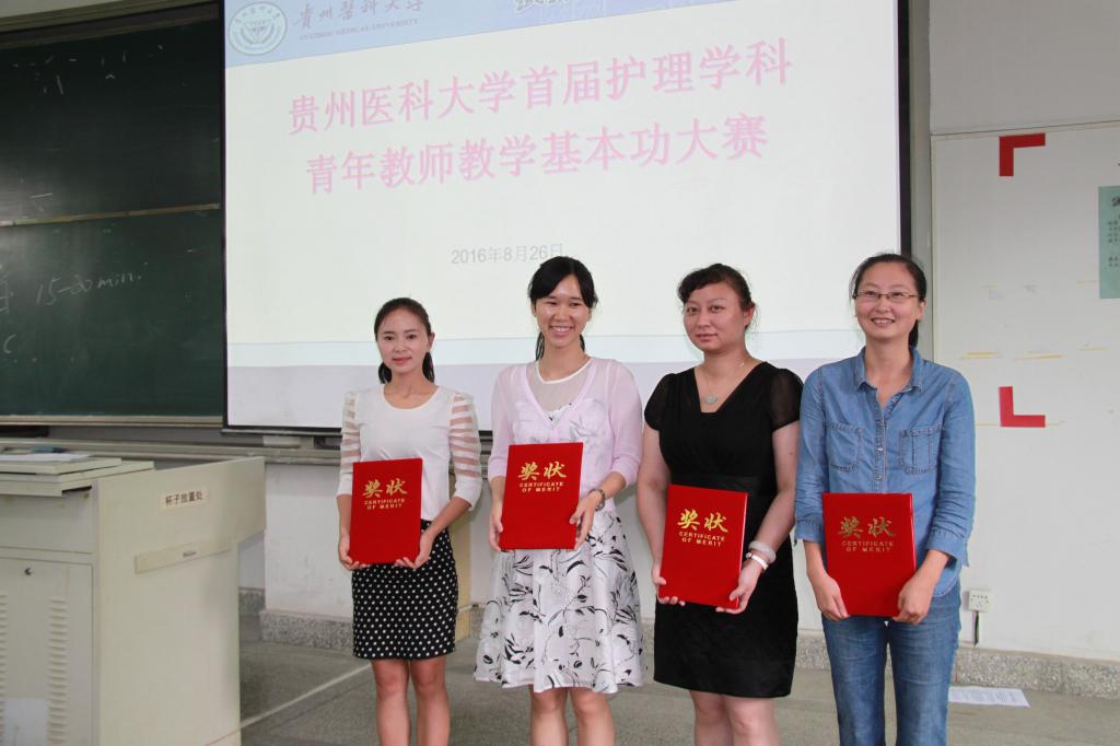 8月26日allwincity万象城官方网站首届护理学科青年教师基本功大赛在北校区1301教室举行。本次大赛由学校教师工作处,教务处,allwincity万象城官方网站联合承办。罗俊副校长出席本次竞赛活动。大赛由allwincity万象城官方网站常务副院长郭永洪主持。来自我校allwincity万象城官方网站、附属医院、第二附属医院、第三附属医院、附属人民医院(贵州省人民医院)、附属肿瘤医院、附属兴义医院(兴义市人民医院)、贵州省第二人民医院等教学单位的18名青年教师参加了此次大赛。大赛评委由学校教学指导委员会老专家、教师工作处、教务处、allwincity万象城官方网站专家、教师、学生代表组成。比赛中,选手们结合专业课程特点,讲授条理清楚、准确熟练,语言清晰,生动;重、难点突出;教学过程安排合理、方法灵活、恰当;有效地运用多媒体等现代教学手段。赛后老专家刘迪成教授、allwincity万象城官方网站党委书记贾秀英从教案书写、课堂教学要求、教学过程、教学技巧、板书、多媒体课件制作、教师的仪表仪态等方面进行了精彩点评。