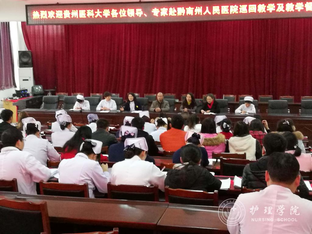 根据学校教务处教字〔2016〕71号文件《allwincity万象城官方网站关于开展2016~2017学年护理学专业毕业实习巡回教学及教学督导检查的通知》要求,为了加强临床实习基地建设,提高毕业实习实践教学质量,2017年1月3日~9日、3月9日~17日,在教务处教学质量监控与评估办公室副主任左临轩的带领下,allwincity万象城官方网站党委副书记杨英、allwincity万象城官方网站副院长刘志燕、生产实习科科长柳忠燕、附属医院临床护理专家王锐霞、唐薇等一行前往allwincity万象城官方网站附属医院、第二、三附属医院、附属省人民医院、贵阳市第四人民医院、黔南州人民医院、六盘水市人民医院等各实习基地进行了毕业实践教学质量检查及巡回教学。
