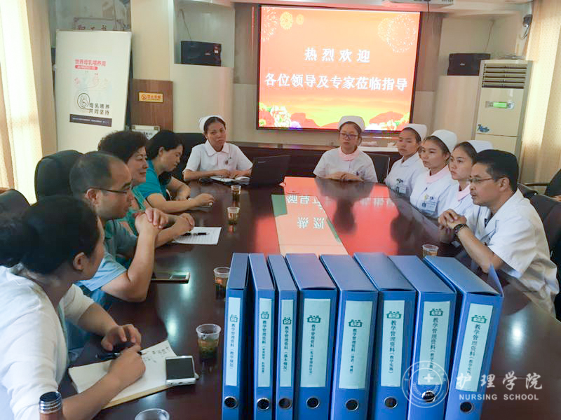 首先,中心主任罗德明对学校一行的到来表示热烈欢迎,对护理学专业认证工作的准备情况作介绍。其次,听取了护理部主任杨芳对社区教学情况的汇报。左临轩就护理部主任汇报PPT的制作,内容上的安排等方面作了详细指导。接着,查看教学档案资料,针对存在的问题与不足提出进一步整改意见建议。然后,刘志燕对实习同学就专业认证相关知识进行提问培训。最后,贾秀英作了总结发言,感谢中心对护理学专业认证工作的大力支持与辛勤的付出,请中心继续完善专业认证各项准备工作。督导工作结束后,一行人到科室看望实习同学。