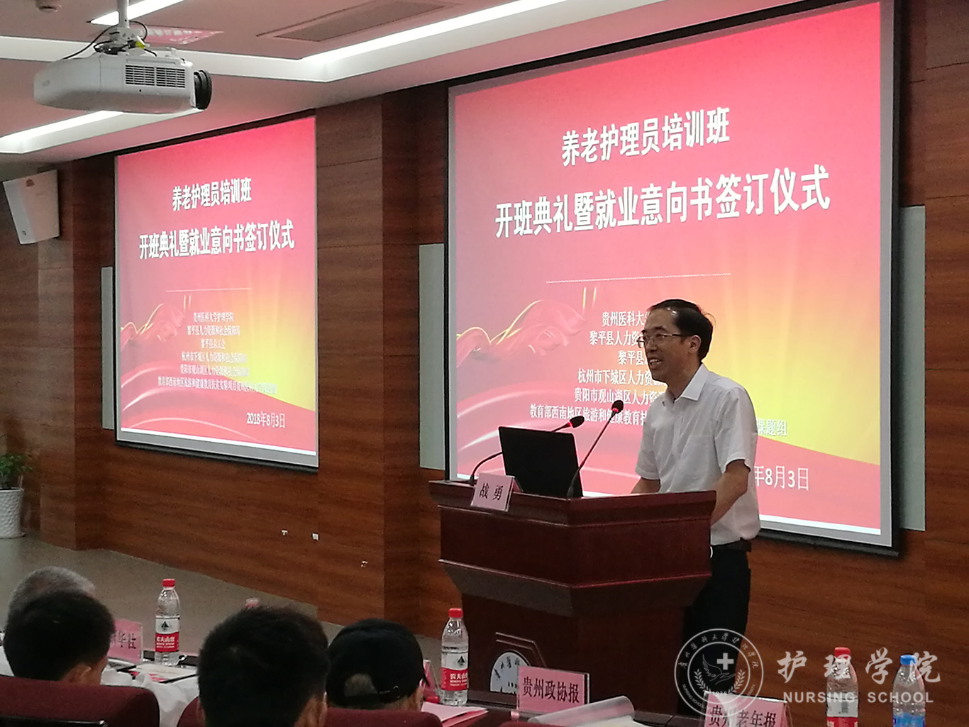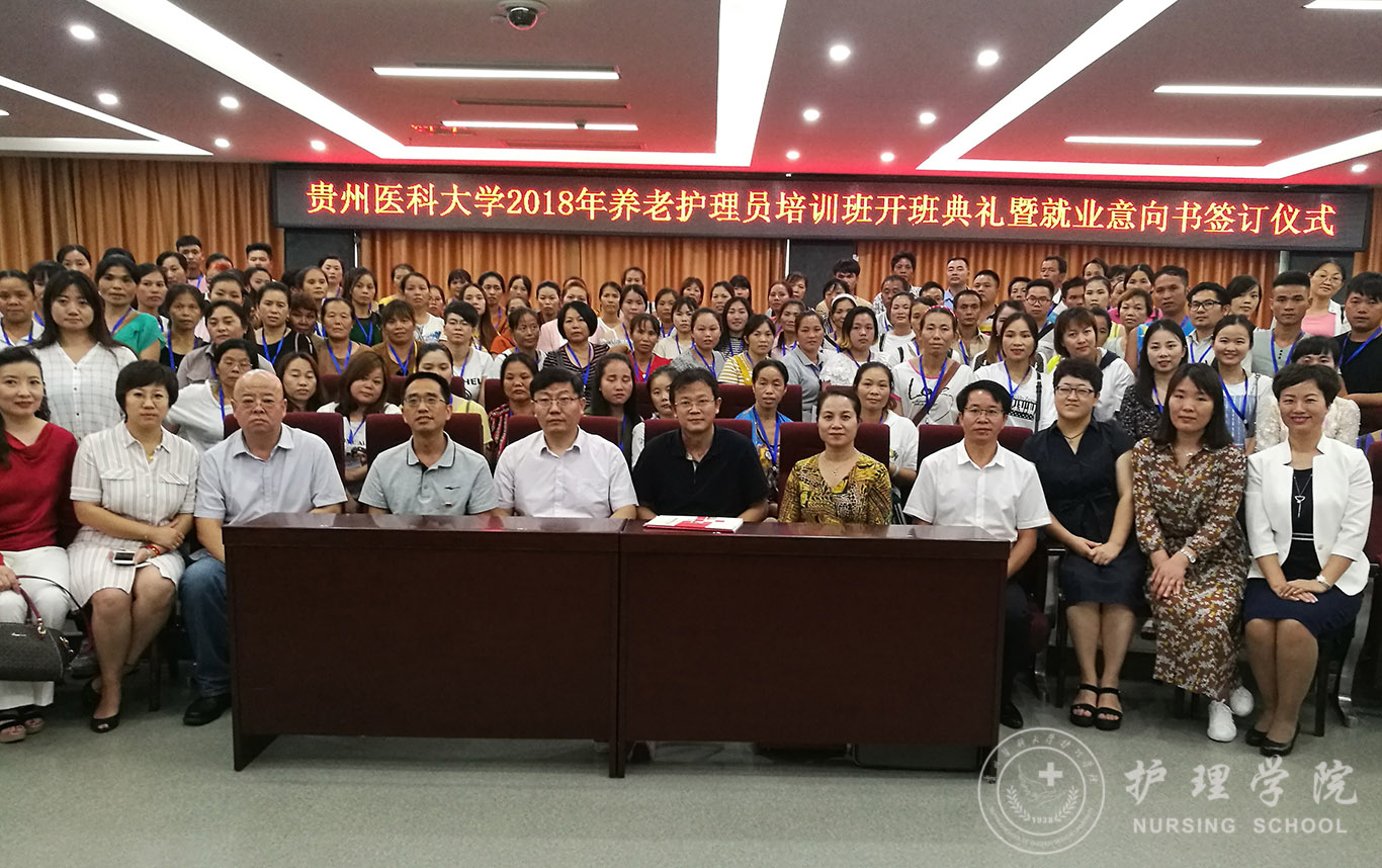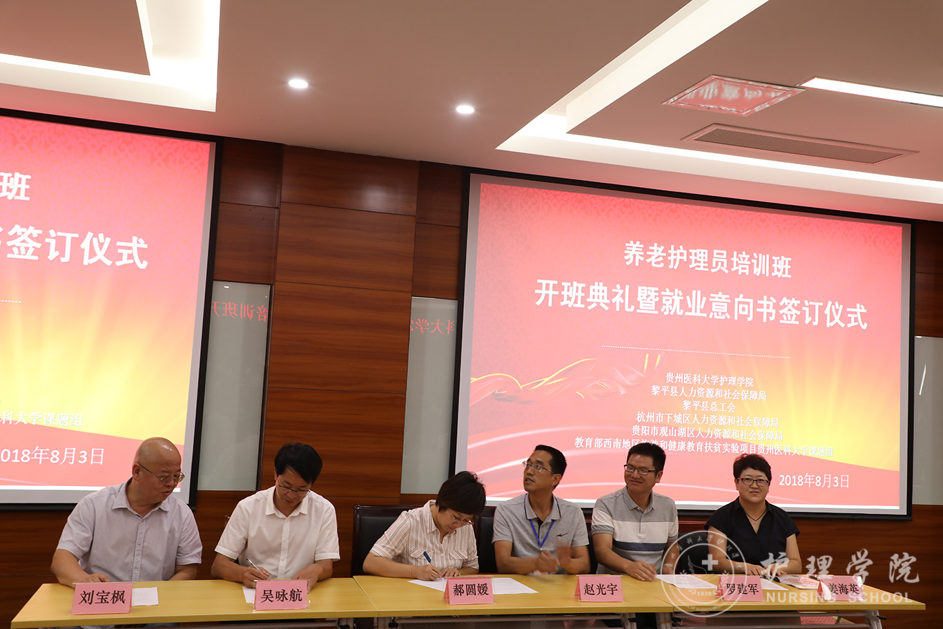 8月3日下午,我校在北校区临床技能中心207会议室举行2018年养老护理员培训班开班典礼暨就业意向书签订仪式,此培训班由allwincity万象城官方网站与黎平县人力资源和社会保障局、黎平县总工会、浙江省杭州市下城区人力资源和社会保障局、贵阳市观山湖区人力资源和社会保障局联合举办。校党委副书记战勇、中国红十字总会发展中心、北京曜阳养老服务中心、北京儆堂集养老中心、贵阳曜阳养老服务中心等需用人单位负责人出席,allwincity万象城官方网站领导及相关部门负责人参加,开班典礼由allwincity万象城官方网站教学科研管理科科长王秀红主持。