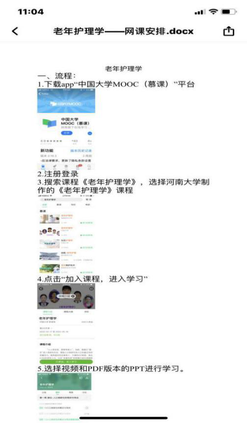 护理人文教研室和护理学基础教研室,选用中国大学和人卫MOOC《护理管理学》、《社区护理学》、《老年护理学》课程。提前在雨课堂发布预习、答疑和测验安排,推送电子教材慕课平台链接。