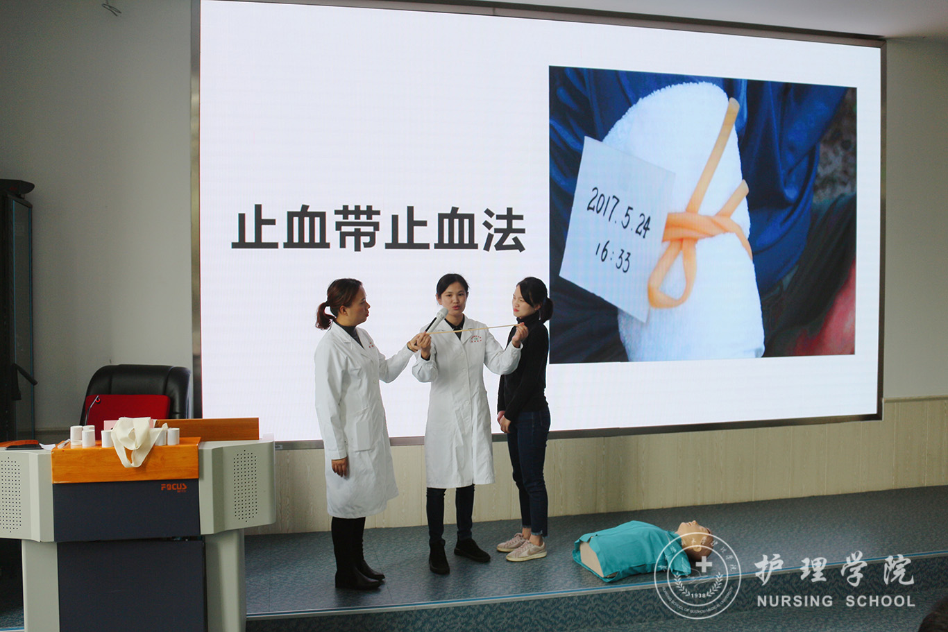 此次培训包括心肺复苏,气道异物清除法,止血、包扎、固定、搬运技术常见急救内容。首先对警察学员进行急救技术理论知识的讲授,然后现场示范急救操作,并认真组织学员分组练习,对学员们在操作中遇到的问题进行耐心解答。老师们精彩的讲授和熟练规范的操作技能得到警察学员的一致好评。