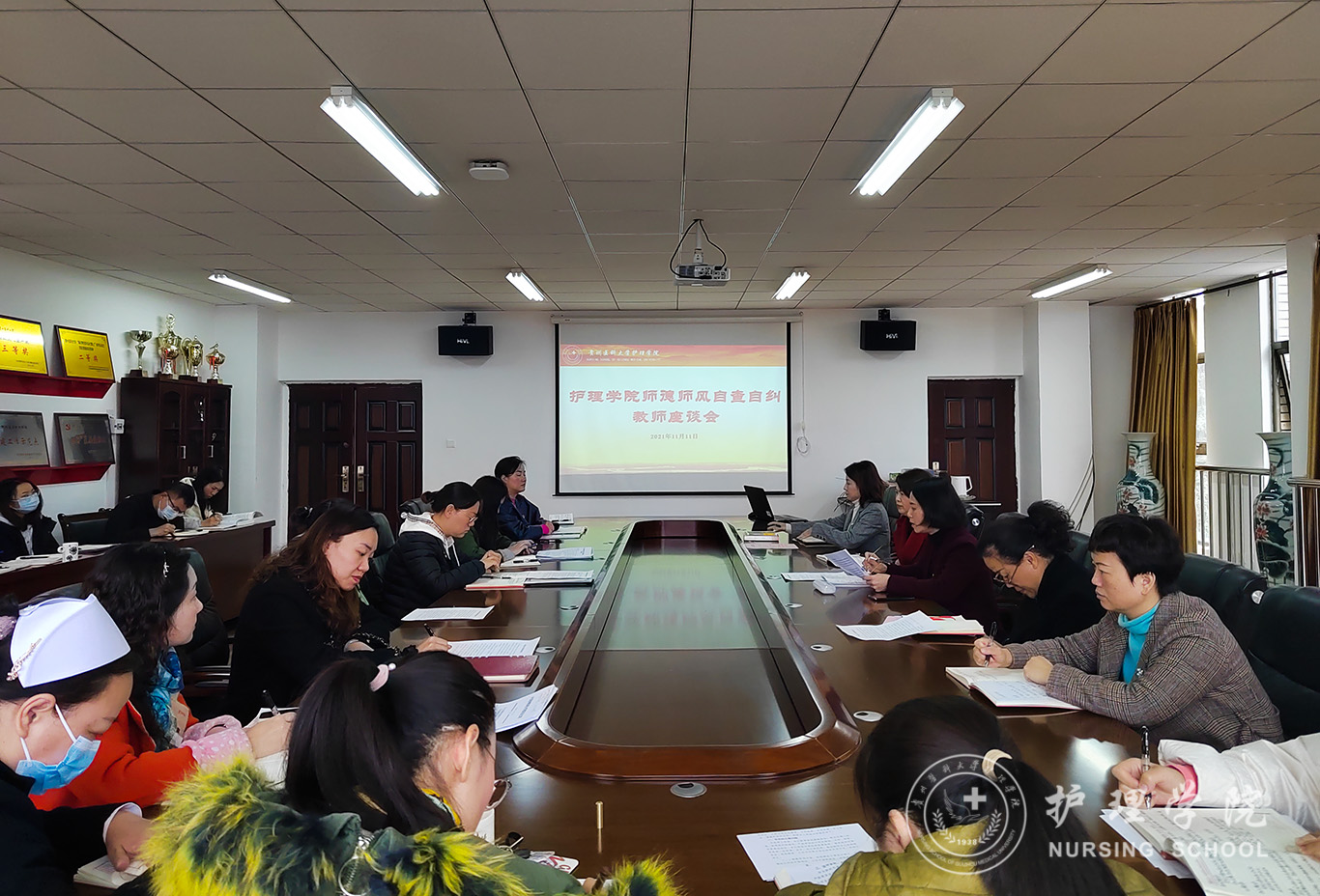 为全面加强万象城官网师德师风建设,规范和引导广大教师全面落实立德树人职责。11月11日,万象城官网在南校区百川楼allwincity万象城官方网站5楼会议室召开师德师风自查自纠教师座谈会。院党委书记杨英、院长李亚玲、副院长刘志燕和王秀红、副处级组织员张黎及全体教师参会,会议由教职工党支部书记张仁莉主持。