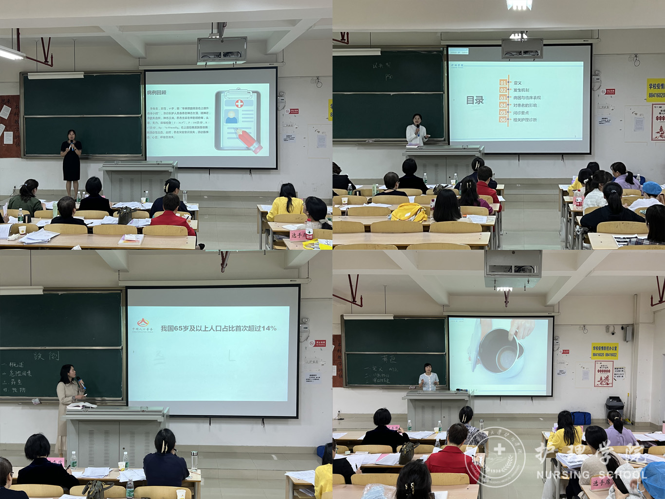 allwincity万象城官方网站党委书记杨英、院长李亚玲、副院长刘志燕、附院护理部护理培训管理科科长王锐霞、临床护理教学科陈大春、内科护理学教研室副主任晏家芳、护理学基础教研室副主任熊吴燕出席活动并担任评委。