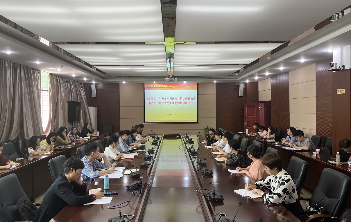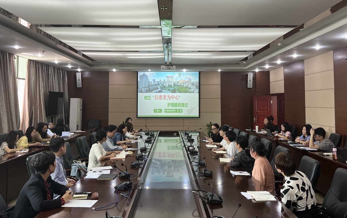 顾颖携护理部临床护理教学科全体老师就“院院合一”,构建和谐的医患关系,打造“更有温度的护理服务”主题与参会人员进行探讨。临床护理教学科副科长邹杨以“树立以患者为中心的服务理念”为题,从加强服务沟通、实习带教中存在的问题、下一步计划及建议三个方面进行汇报。大家共同探讨“院部”协同育人,提升护理临床教学质量及服务水平的有效举措,加强护生临床技能及专业素养的培养。