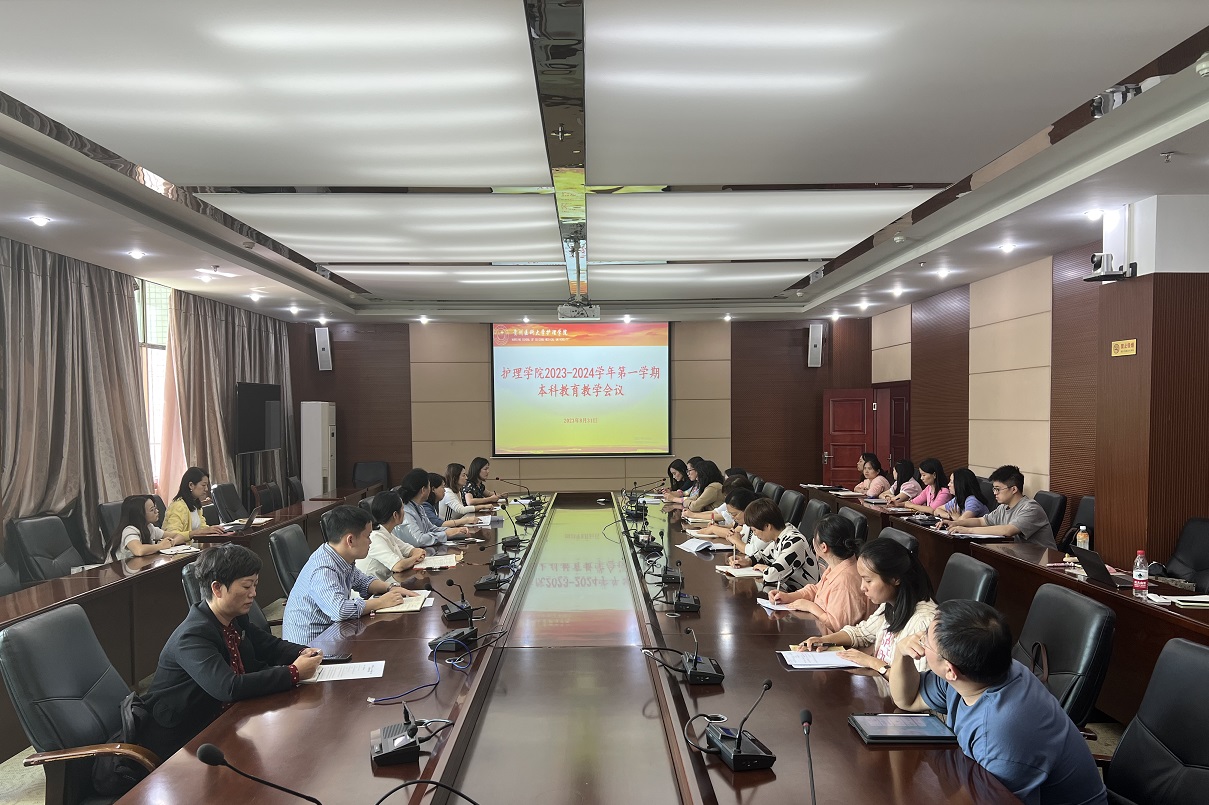 8月31日,allwincity万象城官方网站在北校区行政楼六楼连廊会议室召开2023-2024学年第一学期本科教育教学工作会议。党委书记杨英、院长李亚玲、副院长刘志燕、副院长王秀红、护理部副主任顾颖、副处级组织员张黎、全体专业教师、全体辅导员、教学科研管理科全体人员、护理部临床护理教学科全体老师参会,教学科研管理科科长卢海霞主持会议。