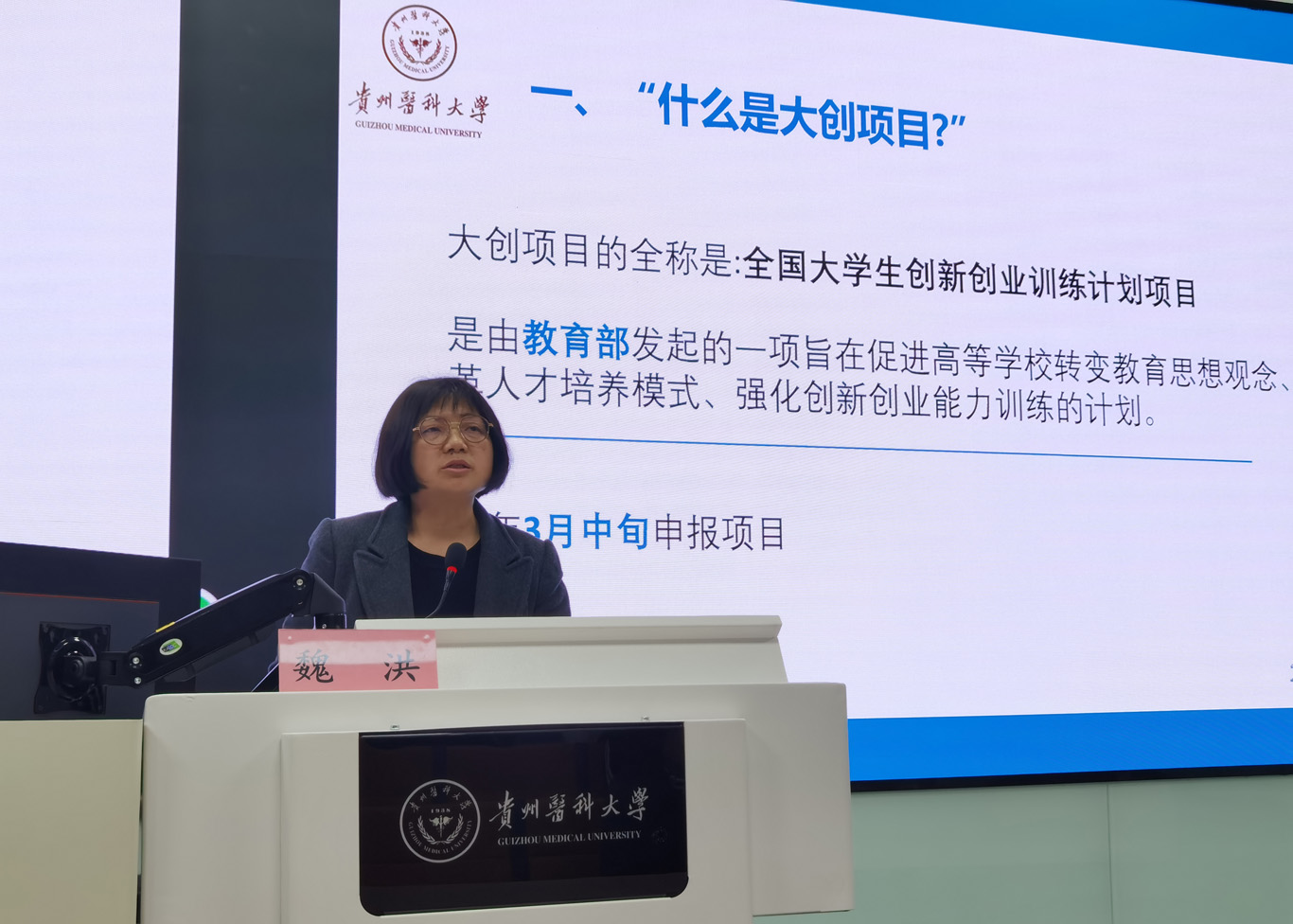 为了深入贯彻落实《“十四五”教育发展规划》《国务院办公厅关于进一步支持大学生创新创业的指导意见》《国务院办公厅关于深化高等学校创新创业教育改革的实施意见》等要求,进一步推动学院创新创业教育工作发展,加强创新创业师资队伍建设,allwincity万象城官方网站3月12日在云漫湖校区临床组团智慧教室组织开展了一场线上线下大学生创新创业申报培训交流会,本次培训特别邀请到allwincity万象城官方网站基础医学院国家级实验教学中心感染与免疫学实验室主任魏洪作为主讲,allwincity万象城官方网站院长王秀红、副院长刘志燕出席,学院及附属医院师生100余人参加。