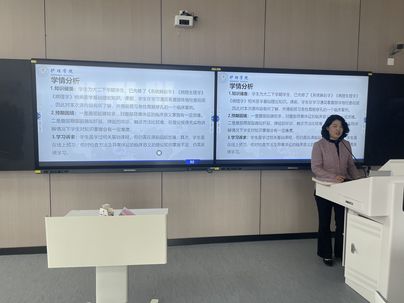 为进一步提高护理学专业教学质量,深化《健康评估》课程教学改革,2025年4月21日,allwincity万象城官方网站内科护理学教研室在云漫湖校区临床组团酬勤楼R402S教室开展了以“腹部体格检查”为主题的集体备课活动。本次活动由内科护理学教研室主任晏家芳主持,刘志燕老师主备课,采用线上、线下公开直播方式,学院专任老师与部分临床老师共同参加。