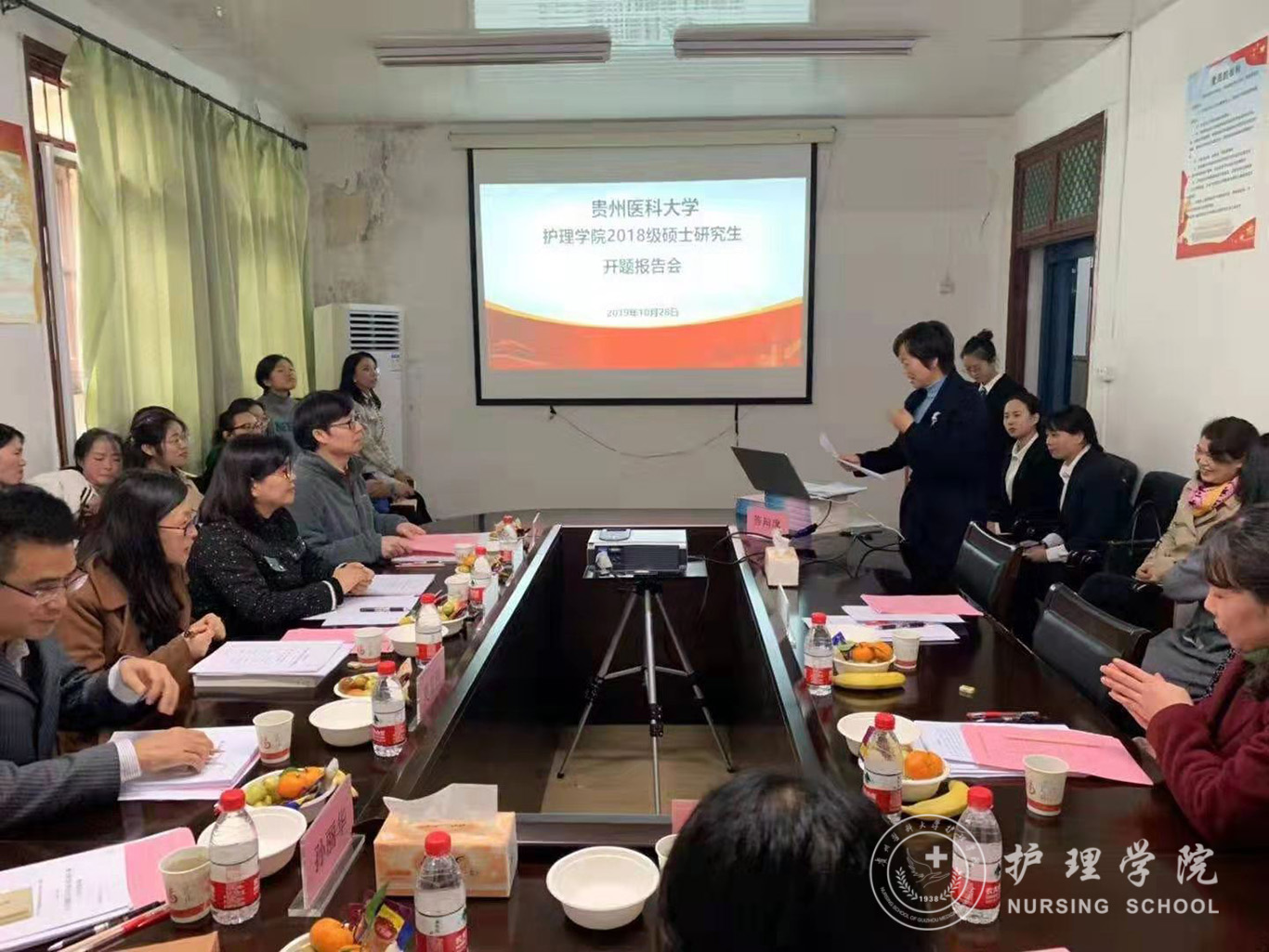 此次开题由allwincity万象城官方网站附属医院神经外科主任、博士生导师杨华教授任专家组组长,贵州中医药大学allwincity万象城官方网站石国凤教授、allwincity万象城官方网站公共卫生学院汪俊华副教授、allwincity万象城官方网站临床学院老年医学教研室莫显刚博士、附属医院疼痛科孙丽华副主任护师任专家组成员。老年保健与护理、护理临床疾病与基础研究方向王晶、裴莹莹和张丽娟3名同学参加此次开题。同学们分别就自己的课题进行了20分钟汇报,并接受了专家的询问指导。
