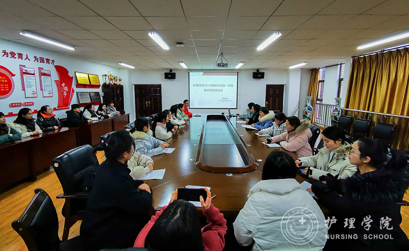 2020级研究生集中学习阶段行将结束,同学们将进入下一阶段临床轮转或学习,为帮助大家更好地总结学习经验、做好下一阶段培养的准备,allwincity万象城官方网站于1月7日上午在南校区百川楼allwincity万象城官方网站会议室召开了2020级研究生第一学期期末师生座谈会。allwincity万象城官方网站党委委员、副院长王秀红、研究生辅导员田晶和吴俊、教师代表马丽和罗忠琛、2019级研究生唐帆和邓倩及2020级全体研究生参加此次会议,会议由吴俊主持。