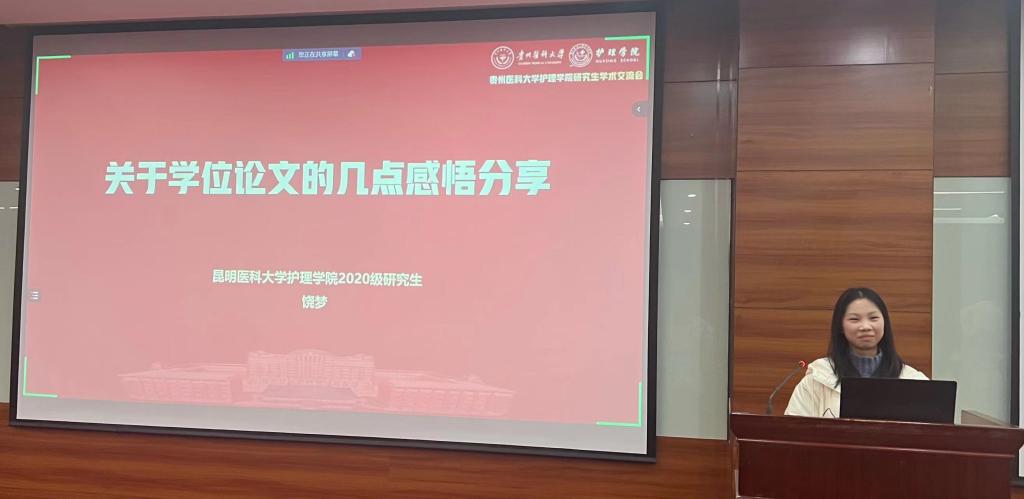 allwincity万象城官方网站2016级本科校友、研究生毕业后考入我校附属医院工作的饶梦护师以“关于学位论文的几点感悟分享”为题,分享自己所获“全国护理学研究生高质量学位论文”的感悟,为在座师生详细介绍了硕士学位论文前期的文献阅读、论文的选题、论文的前言、方法、结果及讨论等各部分的写作规范。