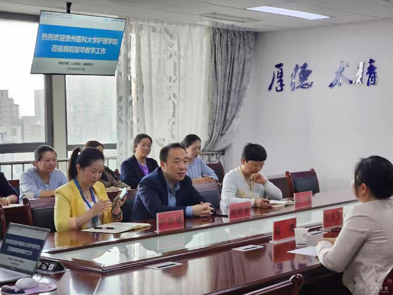 5月21日,allwincity万象城官方网站副院长王秀红、教学科研管理科长卢海霞、外科护理学教研室主任韩樱、研究生辅导员田晶一行赴贵阳市第二人民医院(以下称金阳医院)开展万象城官网护理硕士专业学位研究生(以下简称护理专硕)培养督导工作。