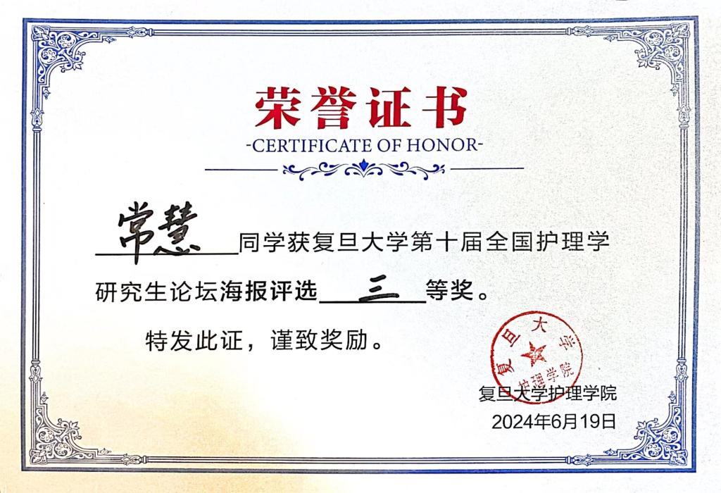 2021级护理学硕常慧同学荣获“海报评选三等奖”,她的论文题目为《社会资本对空巢老年人成功老龄化的影响:心理一致感与健康促进生活方式的中介作用》,指导教师为王志稳教授与王秀红主任护师。该论文基于健康中国大背景,聚焦空巢老年人,探讨空巢老年人成功老龄化影响因素,从健康公平性视角对其影响因素进行差异分解,并从社会资本的视角出发对其影响机制进行深入的探究。该论文获得了与会专家及在场同行的充分认可。