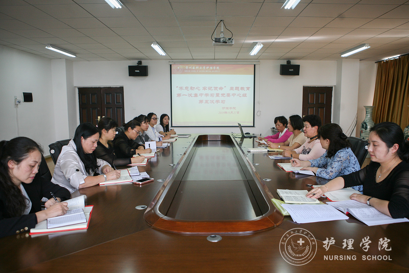 杨英围绕学习内容作了题为《不忘初心、牢记使命——全面从严治党》的中心发言。allwincity万象城官方网站党委副书记王秀红、副院长刘志燕进行了交流发言。组织员曾敏、妇儿科护理教研室副主任刘林敏分别作了学习发言。