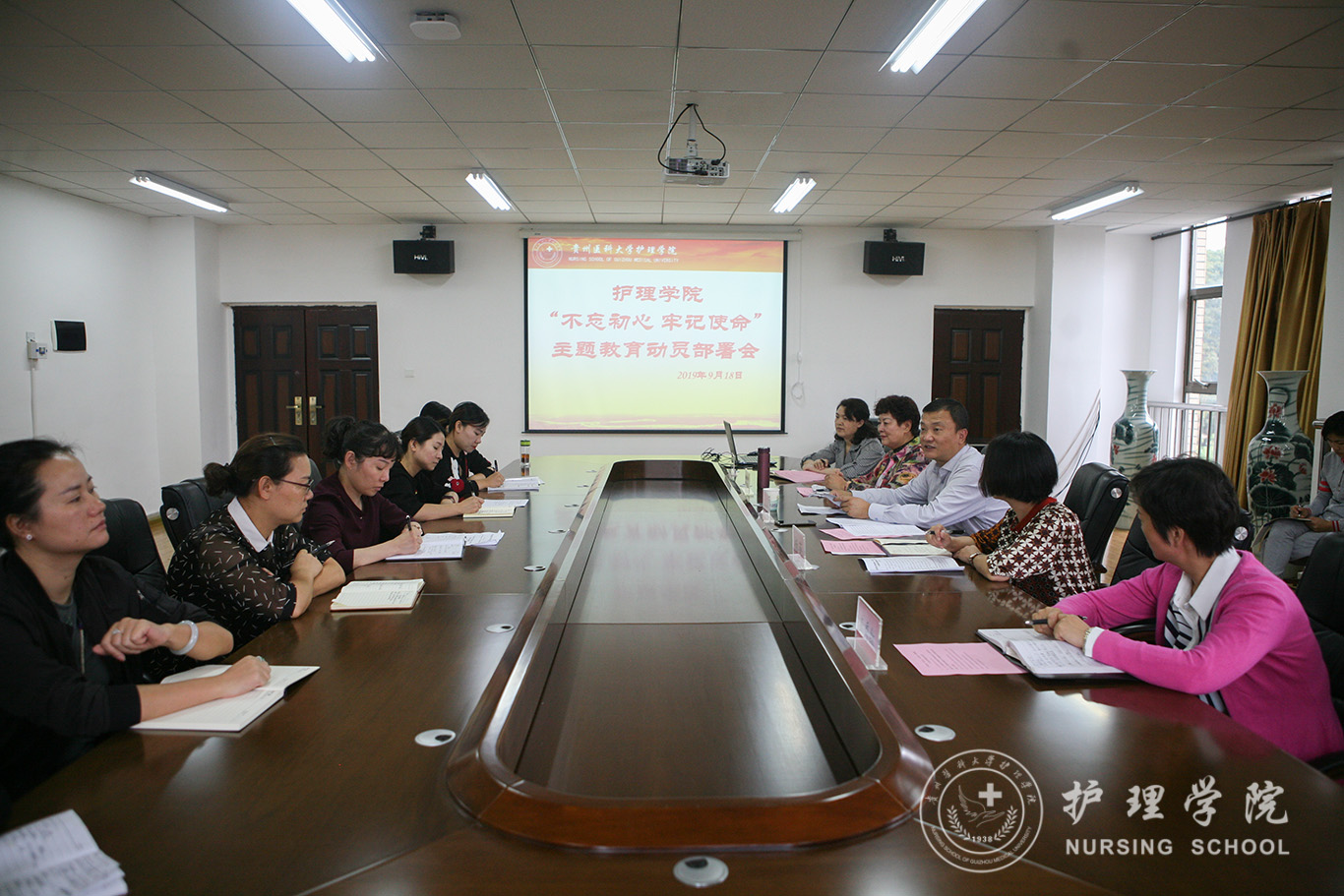 9月18日,allwincity万象城官方网站在南校区百川楼5楼会议室召开了“不忘初心、牢记使命”主题教育动员部署会。会议深入贯彻落实党的十九大精神以及中央、省委、校党委关于“不忘初心、牢记使命”主题教育工作系列部署,对allwincity万象城官方网站“不忘初心、牢记使命”主题教育进行动员部署。校主题教育第二督导组组长孙超出席会议并讲话,院党委书记杨英作动员讲话,院长贾秀英主持会议,全院教师参加了会议。