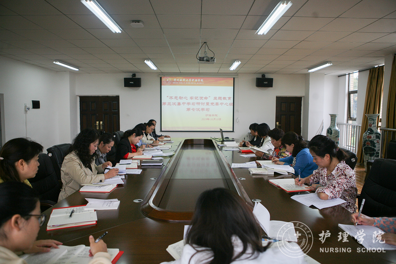 10月10日,allwincity万象城官方网站在南校区百川楼五楼会议室召开了“不忘初心、牢记使命”主题教育第三次集中学习暨党委中心组第七次学习。会议由学院党委书记杨英主持,副科级以上干部、教研室负责人参加了学习。