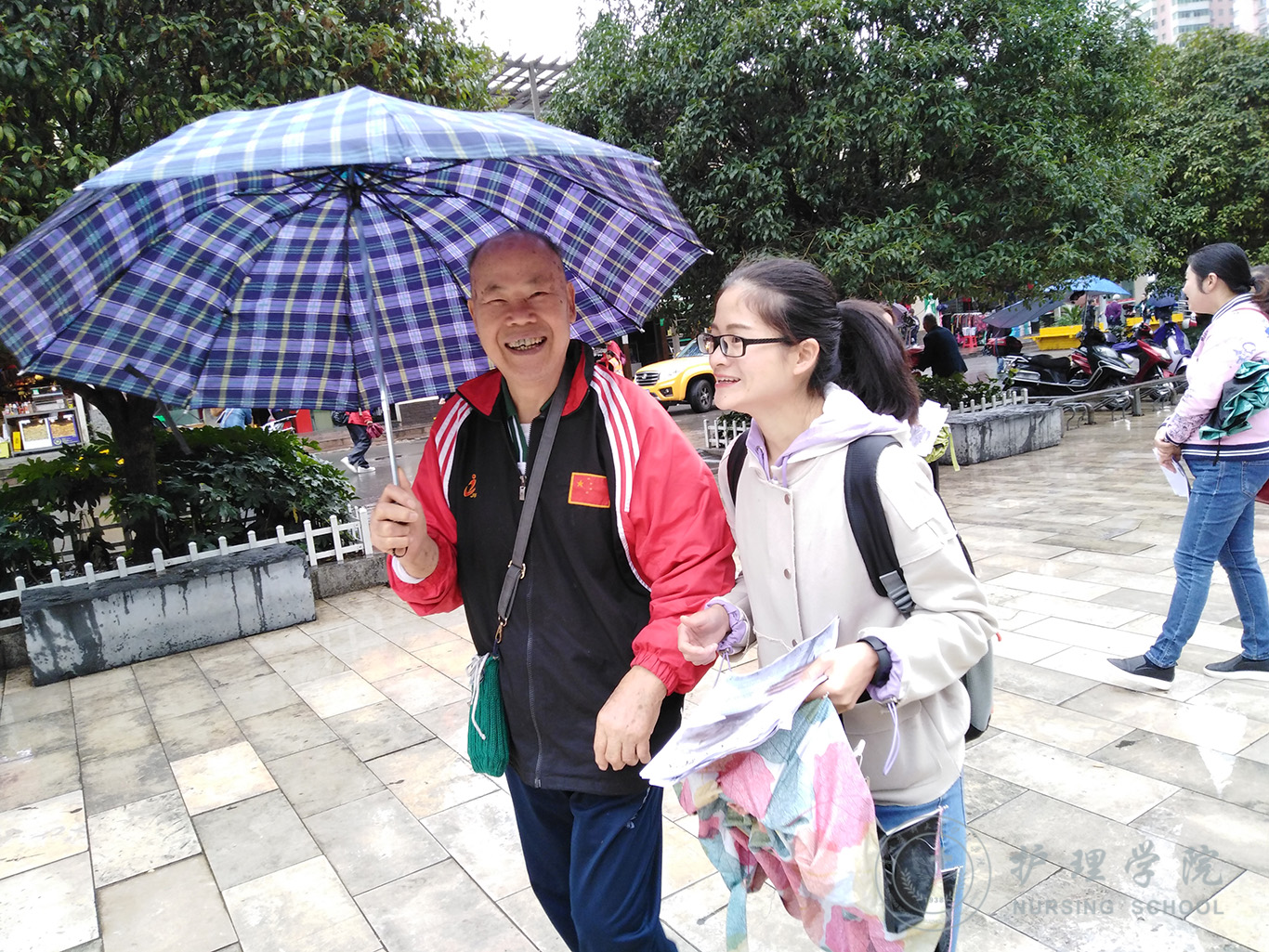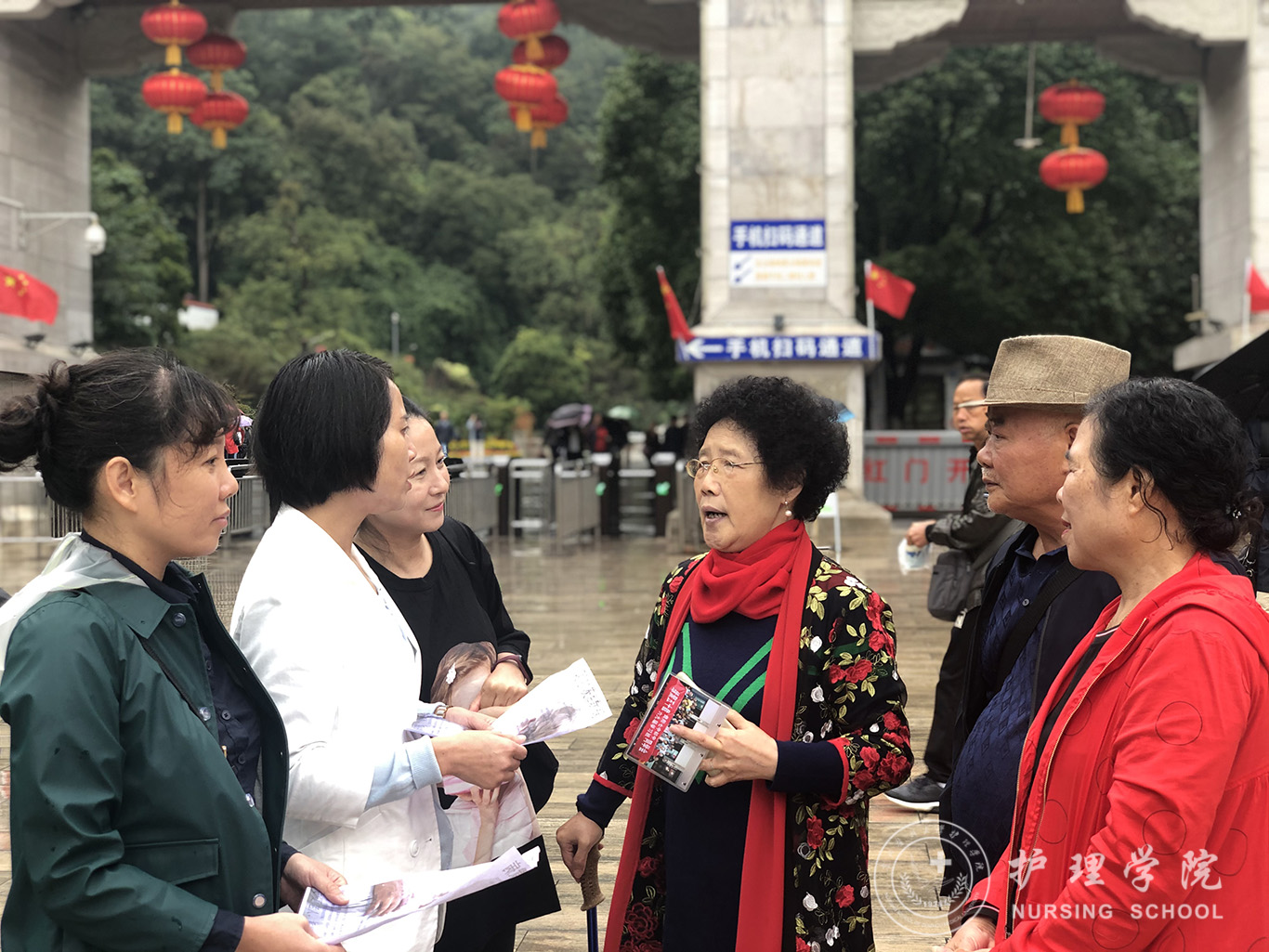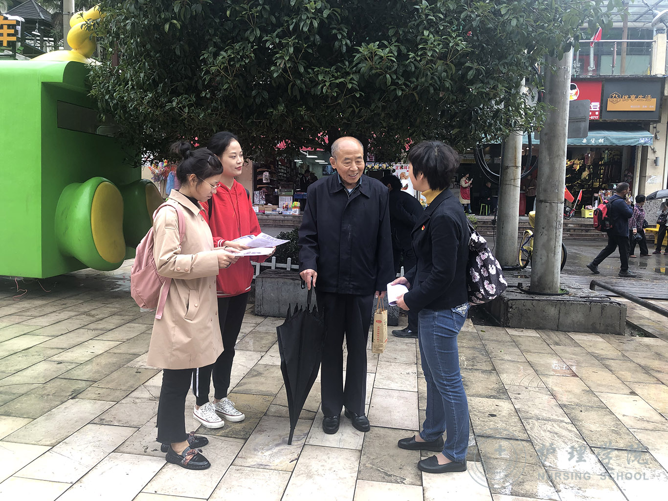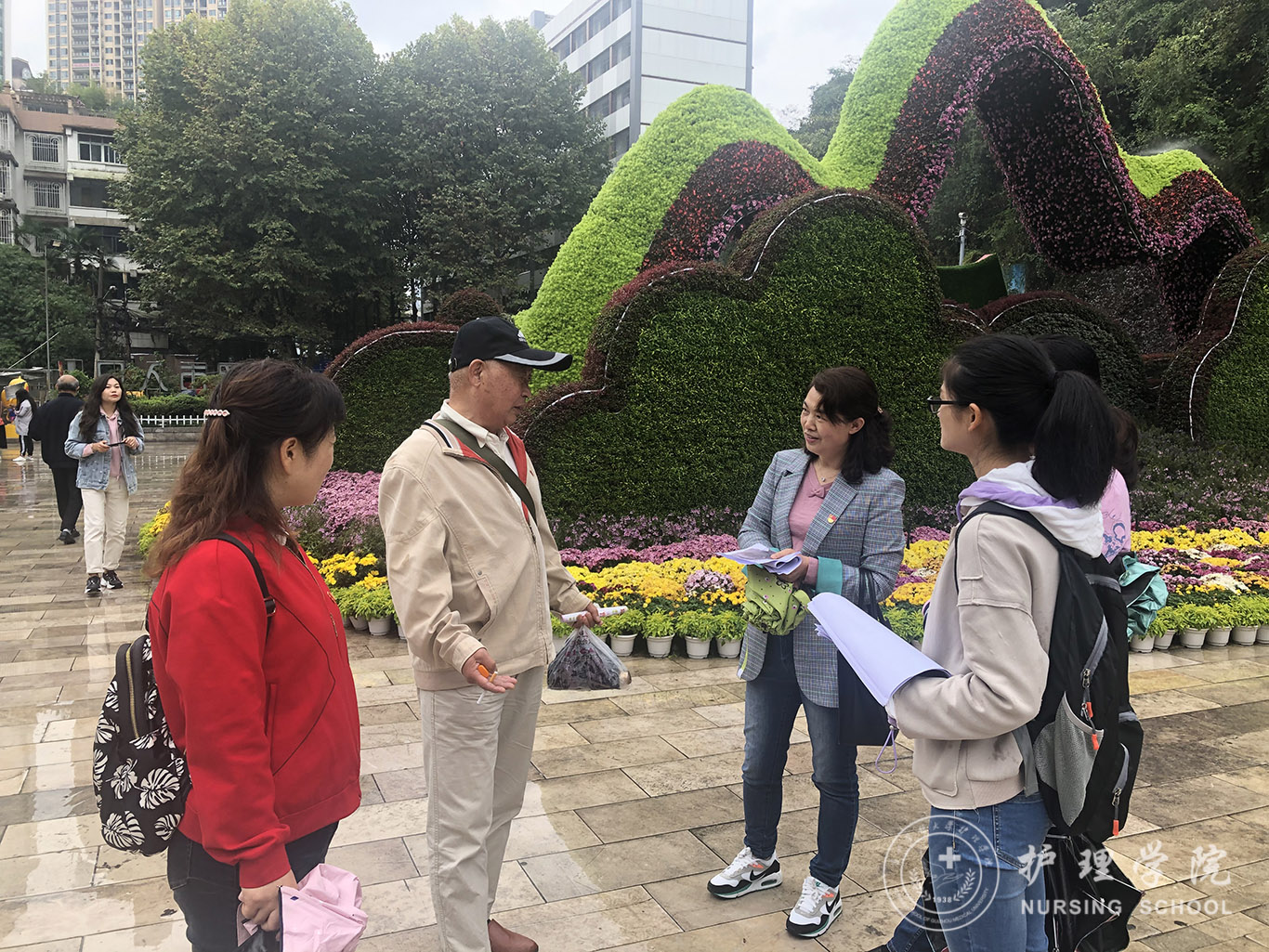 有数据显示,目前中国大约有1000万左右阿尔茨海默症患者,占世界发病总数的1/4,发病人数为世界第一位。而由于大众对该病的认识不足,导致就诊率和治疗率都非常低,给很多家庭带来了沉重的困扰及负担。为此,allwincity万象城官方网站依托在老年护理方面的教学及工作经验,到老年人聚集的黔灵山公园开展了阿尔茨海默症的知识宣讲和护理指导活动。大家发放了上百份疾病宣传资料,积极为老人们讲述该病的发生原因、临床症状、治疗和预防,告知老人们在日常生活中的注意事项,帮助他们认识正常衰老和记忆力下降的区别,同时建议高危人群及时去医院就诊。天空下着蒙蒙细雨,依然阻挡不了大家的热情。