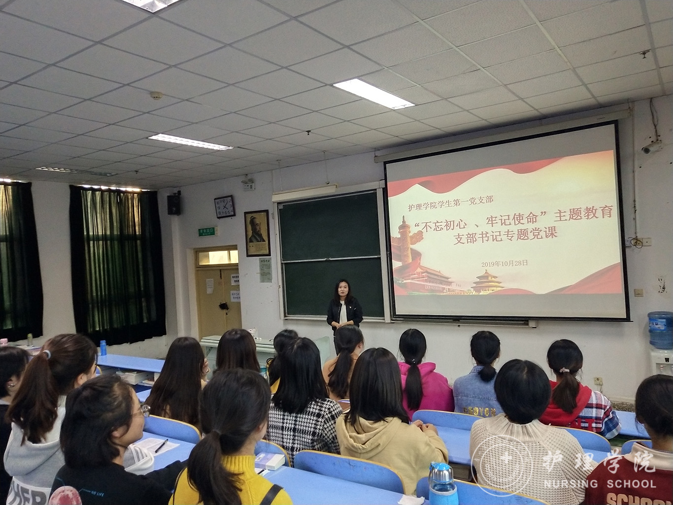 为扎实开展“不忘初心、牢记使命”主题教育,按照主题教育实施方案,allwincity万象城官方网站学生第一党支部于10月28日开展了支部书记讲党课活动。学生第一党支部书记李颖主讲,全体在校生党员参加了现场学习,省外实习生党员通过“学习强国”APP在线参加了学习。