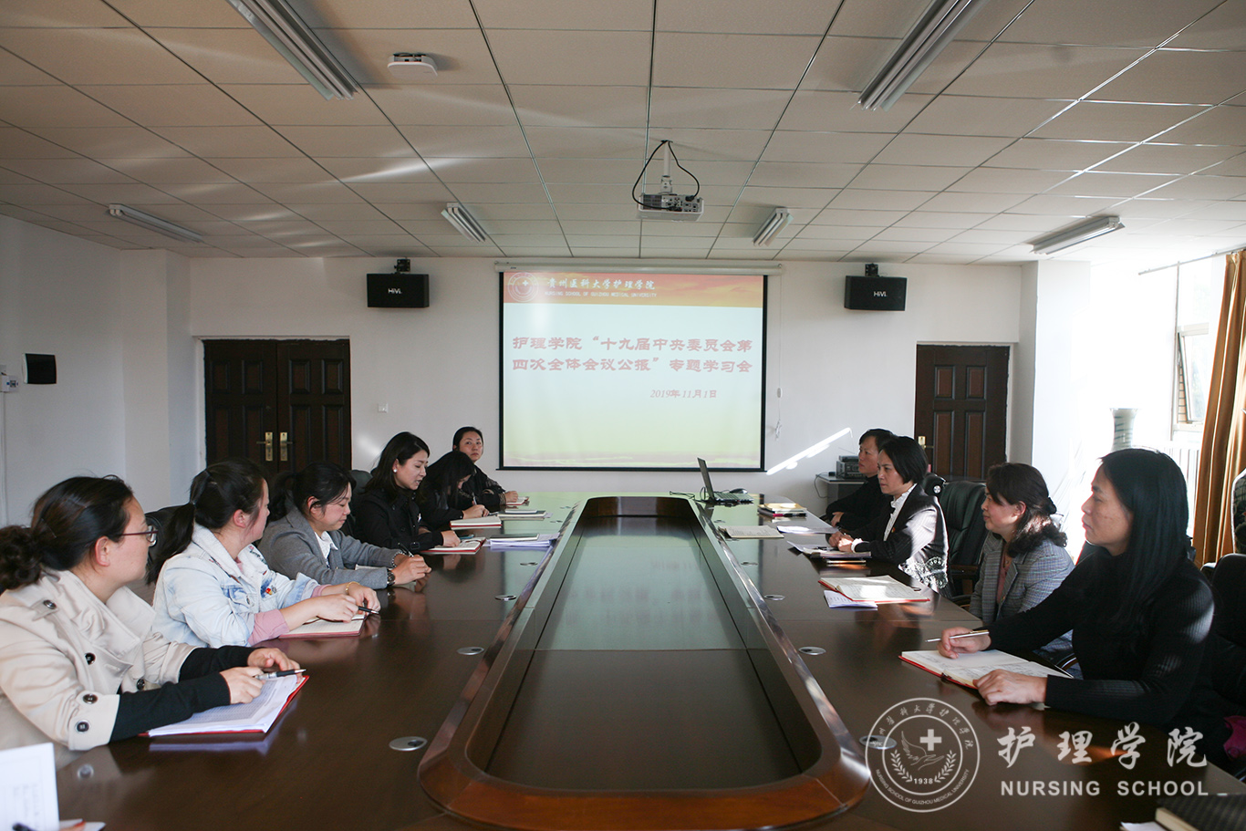 为深入推进“不忘初心、牢记使命”主题教育,切实增强党员同志的政治自觉和思想自觉。allwincity万象城官方网站于11月1日组织全院党员师生开展了“中国共产党第十九届中央委员会第四次全体会议公报”专题学习会。