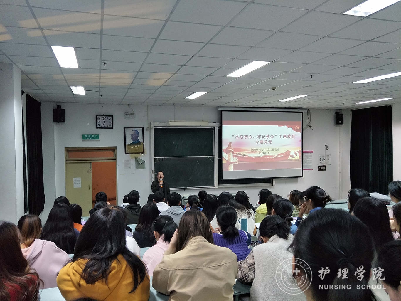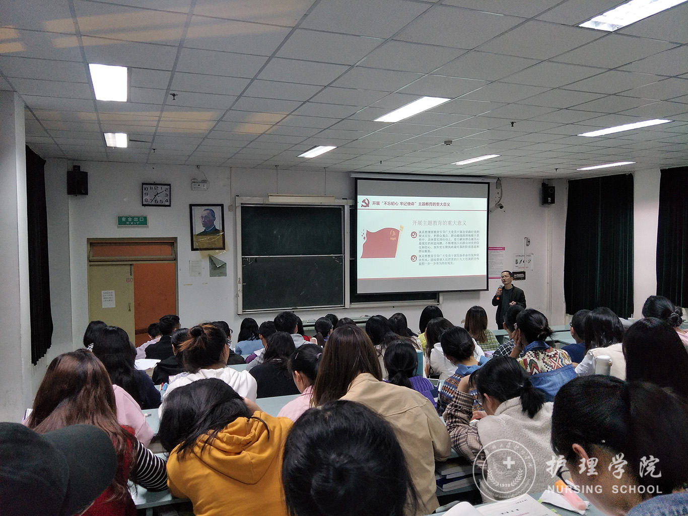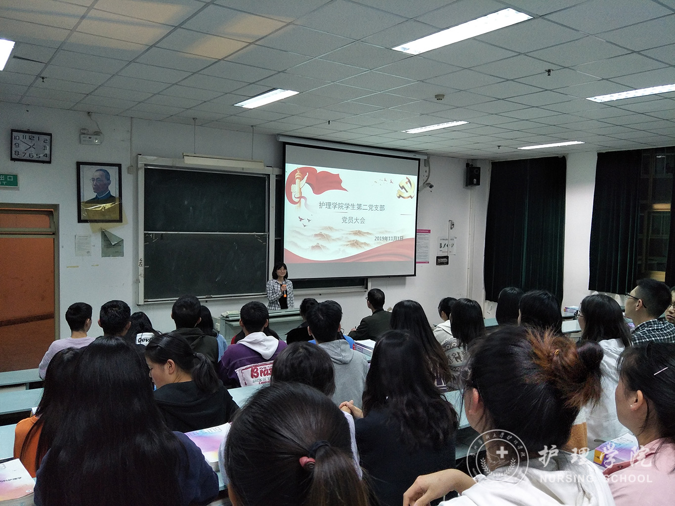 为认真贯彻党中央、省委、学校党委关于“不忘初心、牢记使命”主题教育有关精神和要求,深入学习贯彻习近平新时代中国特色社会主义思想和党的十九大精神,把党组织锻造得更加坚强有力,发挥好支部的战斗堡垒和广大党员的先锋模范作用,锤炼青年学生党员忠诚干净担当的政治品格,11月1日,allwincity万象城官方网站学生第二党支部在北校区3202教室召开党员大会暨开展党支部书记讲“不忘初心、牢记使命”专题党课活动。allwincity万象城官方网站学生第二党支部全体党员参加会议,本次会议由学生第二党支部宣传委员安树霞主持。