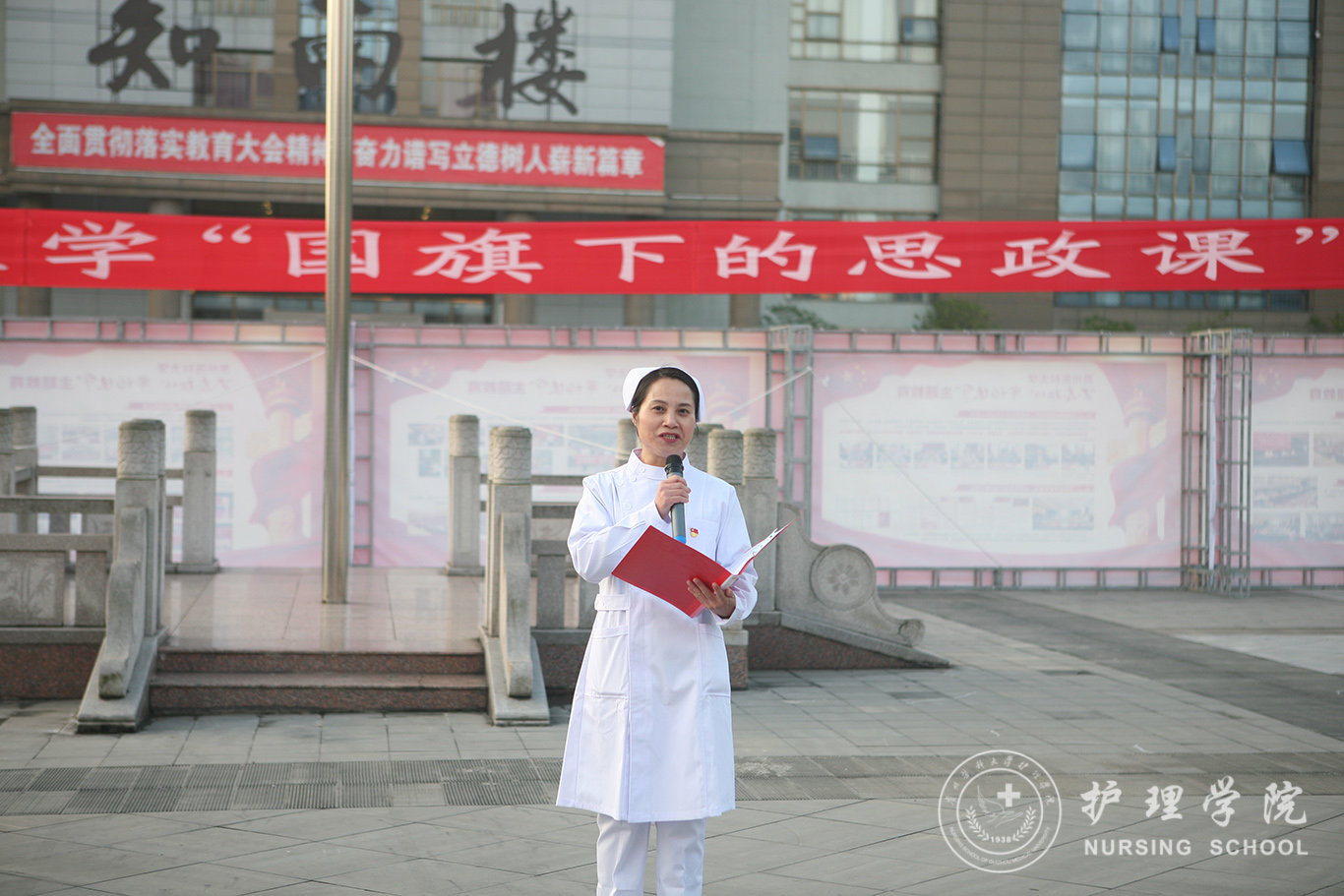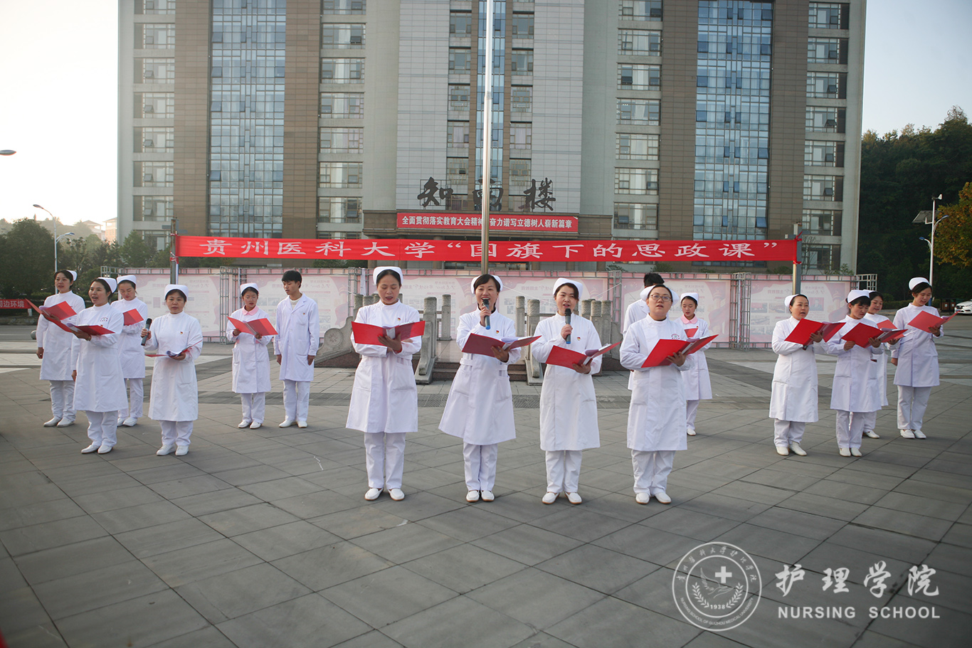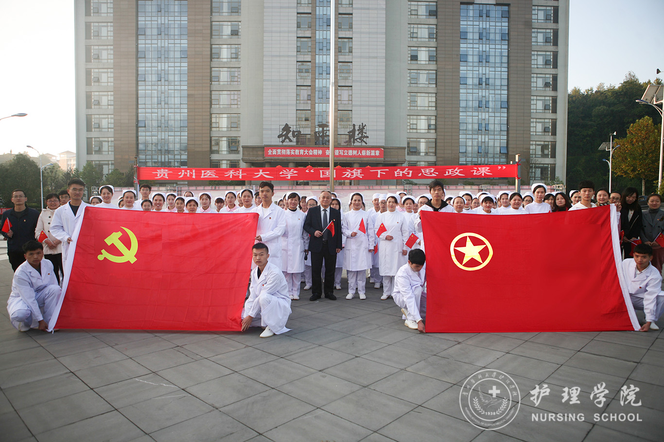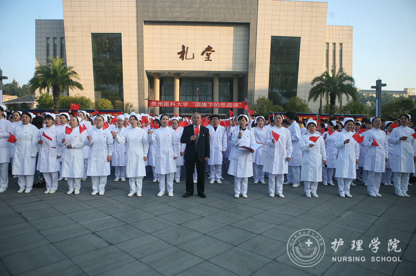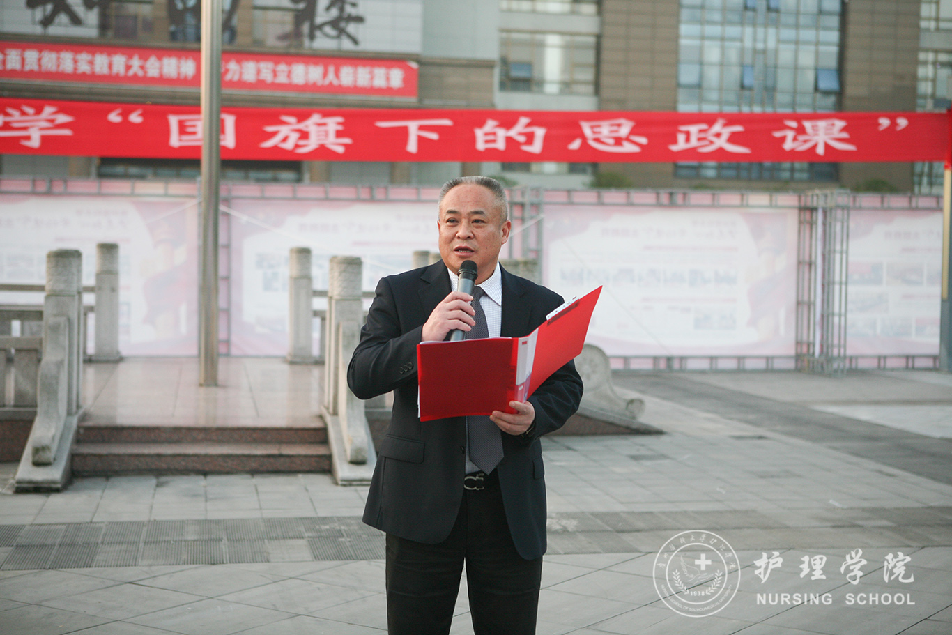 升旗仪式结束后,田晓滨给allwincity万象城官方网站师生上了一堂深刻的“国旗下的思政课”。他回顾了党带领人民艰苦奋斗、自力更生的历史,分析了新中国在短时间内发生了改天换地巨大变化的原因。他指出:70年来,中国始终坚持走自己的路,经过长期探索和实践,开创和发展中国特色社会主义,从根本上改变了中国人民和中华民族的前途命运。我们的祖国从来没有像今天这样欣欣向荣、蒸蒸日上,我们的民族从来没有像今天这样扬眉吐气、自信满怀,我们的人民从来没有像今天这样幸福安康、意气风发。他谈到:建校以来,学校始终秉承“诚於己,忠于群,敬往思来”的校训,坚持“文化建校、质量立校、人才强校、科研兴校”的办学理念,在贵医精神的感召下,学校的各项事业取得了长足的进步,实现了跨越式发展。作为贵医人,我们责任重大、使命光荣,所以每个人都应把个人发展与学校的事业和祖国的命运紧密结合起来,为学校的发展、祖国的繁荣做出应有的贡献。