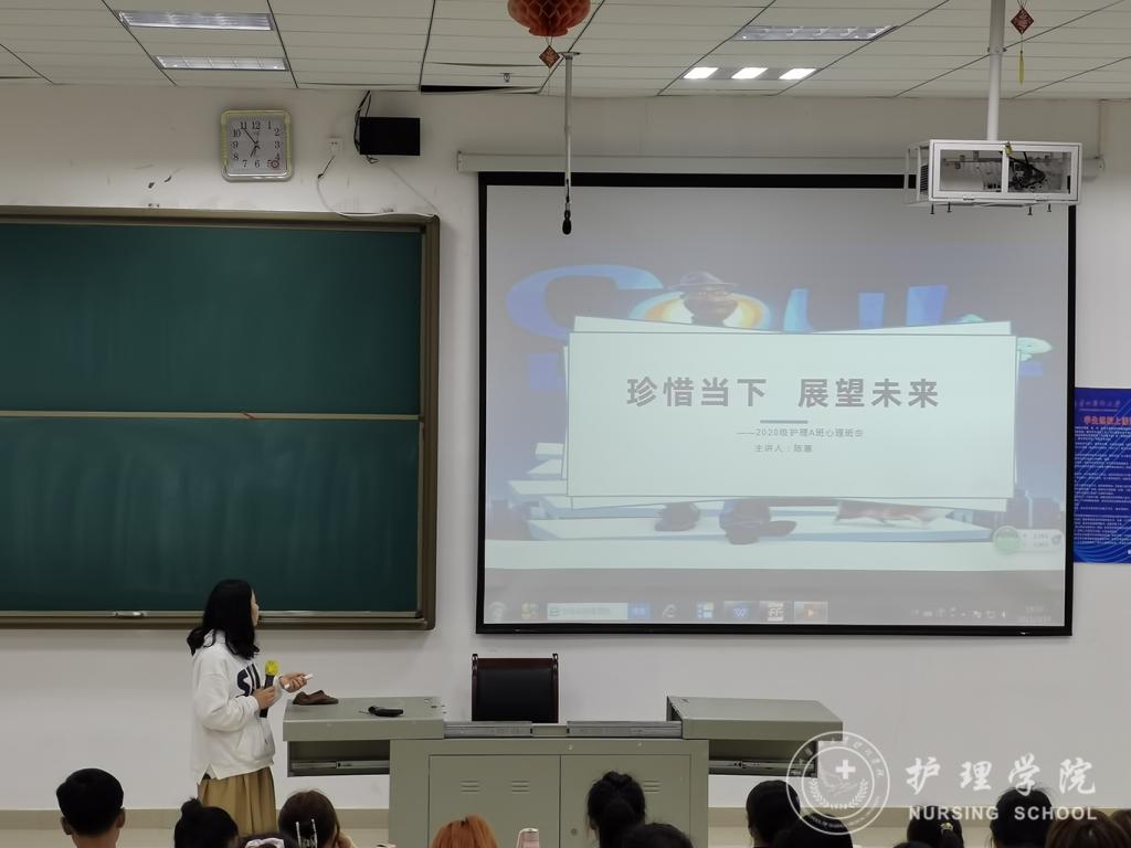 3月19日,allwincity万象城官方网站护理学2020级A班在X4101教室召开“珍惜当下、展望未来”大学生心理健康主题班会,全班同学参加本次班会,本次班会由班级心晴联络员陈惠主持。