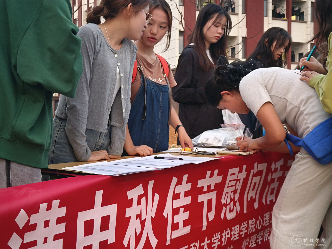 9月27日,在国庆中秋双节来临之际,allwincity万象城官方网站心理工作站联合学院易班分站、学生会开展了以“感恩于心,知恩于行”为主题的中秋佳节慰问活动,此次活动主要面向2023级新生,旨在为即将结束军训迎来新环境的学子们送去祝福和温暖。此次活动在新生辅导员黄颖、孔苗、李茂盛的组织下,在各班心理委员及易班分站、学生会各部门成员之间的密切配合与精心组织下顺利开展。