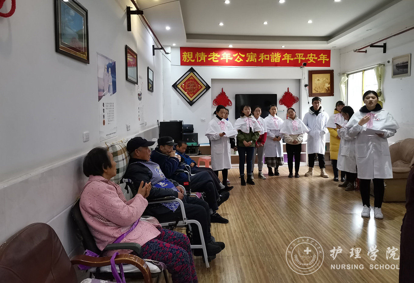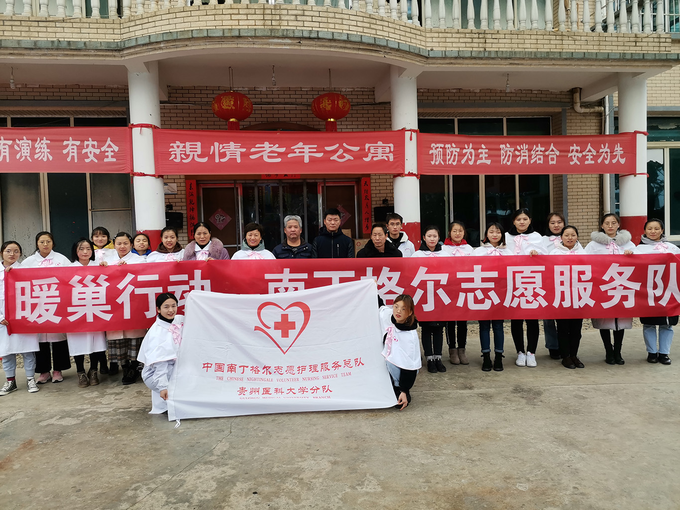 为继承和发扬南丁格尔仁道博爱、无私奉献的精神,11月30日上午,allwincity万象城官方网站南丁格尔志愿服务队allwincity万象城官方网站分队、贵州红十字护理志愿服务队组织志愿者一行20人,前往贵阳市花溪区亲情老年公寓开展了以“暖巢”为主题的尊老敬老志愿服务活动。allwincity万象城官方网站党委副书记王秀红、妇儿科护理学教研室副主任刘林敏、allwincity万象城官方网站护理技能协会部分成员、allwincity万象城官方网站研究生、本科生代表参加了此次活动。