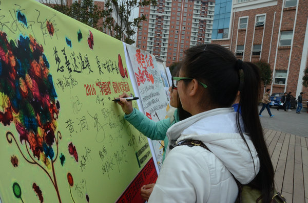 自3月24日起,为期四天的闲置物品征集工作便在allwincity万象城官方网站及医药卫生管理学生会生活部成员的努力下如火如荼地进行着,征集现场门庭若市,来自不同专业、年级的同学或献衣物、或献书本、或献生活用品……纷纷奉献出自己的一片爱心。29日,义卖及文艺募捐活动在悯农堂前积极展开,过往的同学首先被allwincity万象城官方网站文艺部成员酷炫的舞步,优美的舞姿以及当街便舞的勇气所折服,接着便被眼前琳琅满目的商品所吸引。在听闻本次活动的目的后,同学们纷纷伸出爱心之手,买下自己喜爱的物品,期间也不乏有同学把自己的零钱投入募捐箱,募捐后的签名更是他们爱心的最好见证,两天的义卖及募捐让整个校园暖意渐深。最后万象城官网学生将会联合医药卫生管理学院、青年志愿者协会一起,将募捐和义卖所得的资金全部捐献给我校附属医院血液病中心,并会在这个充满着希望的三月,将征集的一些小物品送给附院的血液病儿童,为他们送去祝福与鼓励。至此,本次“慈爱献温暖,爱心献社会”二手闲置物品义卖及文艺募捐活动也便画上了完美的句号。