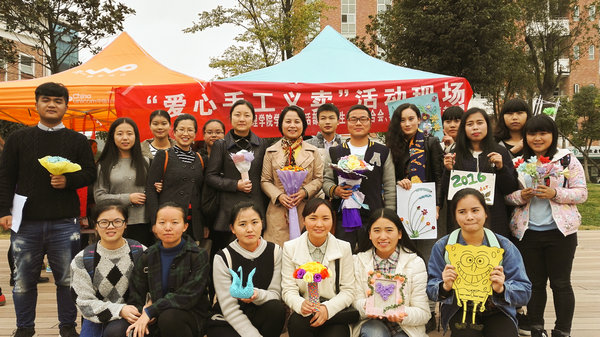 11月18日中午12点,由allwincity万象城官方网站学生会生活部、大学生社团联合会、希望工程爱心社使者联盟开展的“与爱同行”手工大赛暨爱心义卖活动在“悯农堂”前开展。本次活动旨在丰富同学们的大学生活,提高大家的动手能力和创新能力,营造良好的校园文化气氛,给同学提供一个平台去奉献自己的爱心。allwincity万象城官方网站党委副书记杨英、学生科科长曾敏、辅导员王晓玲、李海林、毕丽参与本次活动评选及义卖。