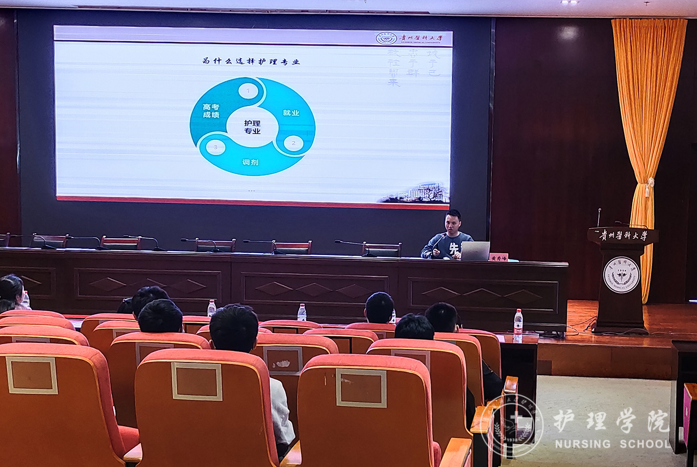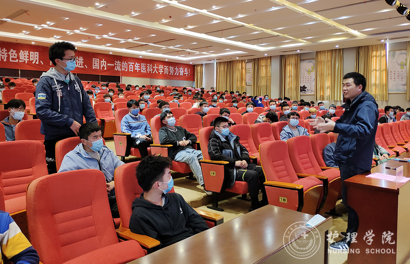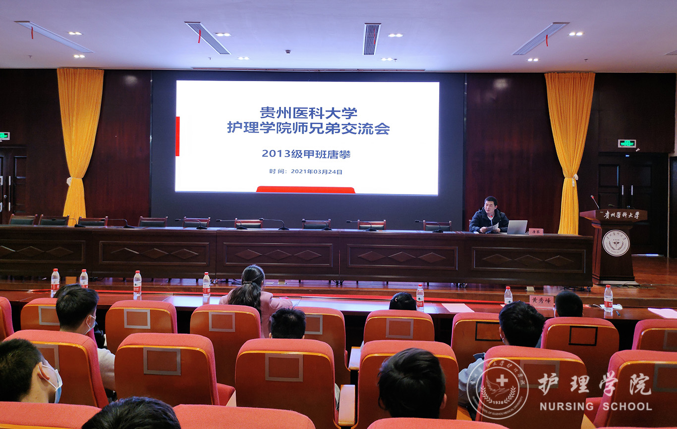 3月24日,为庆祝中国共产党成立100周年,弘扬红色经典,共庆抗疫胜利,稳定男护生专业思想,allwincity万象城官方网站在南校区道德讲堂开展了“男丁格尔”校友事迹分享交流大会,会议由allwincity万象城官方网站团委主办,男护生协会组织进行并邀请了2013届优秀校友黄秀峰、2017届优秀校友唐攀主讲。allwincity万象城官方网站正科级组织员曾敏老师、学生科副科长毕丽老师、学生第三党支部书记刘妍老师以及2019-2020级全体男同学参加了此次会议,会议由allwincity万象城官方网站学生科副科长毕丽老师主持会议。