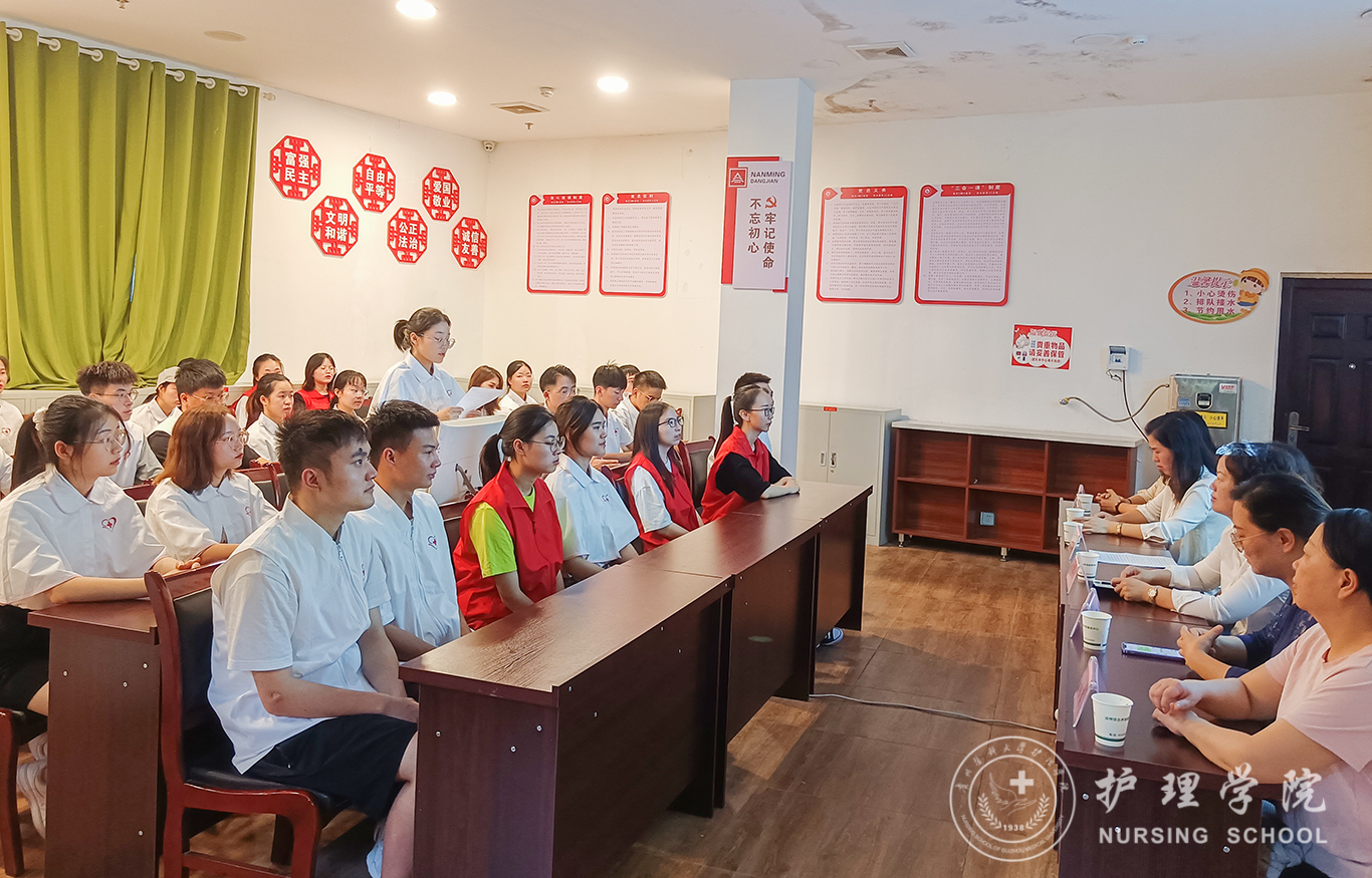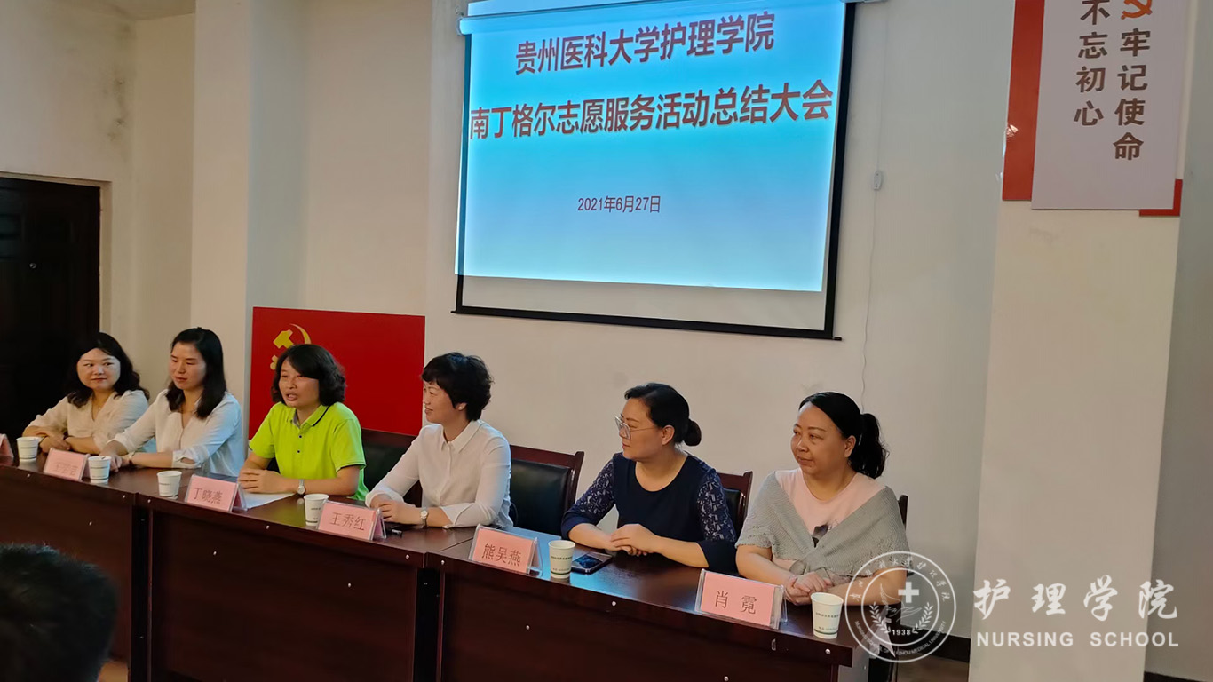 6月27日,allwincity万象城官方网站在贵阳市油榨街社区晚霞彩带老年人日间照料中心召开南丁格尔志愿服务活动总结大会,贵钢医院党总支书记、日照中心法人代表丁晓燕,allwincity万象城官方网站副院长王秀红,护理学基础教研室副主任熊吴燕,教师肖霓、王芸芸、王先美及allwincity万象城官方网站护理学、助产学2018级学生代表参加了本次大会,会议由熊吴燕主持。