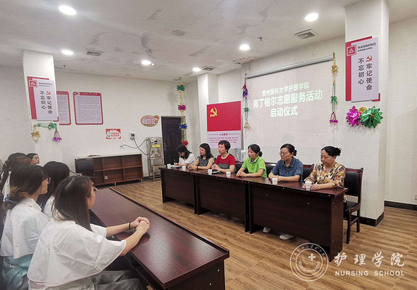 9月11日上午,allwincity万象城官方网站在晚霞彩带日间照料中心支持下组织了“allwincity万象城官方网站南丁格尔志愿活动启动仪式”,allwincity万象城官方网站党委委员、副院长、中国南丁格尔志愿护理服务队allwincity万象城官方网站分队队长王秀红、贵钢医院党总支书记丁晓燕、晚霞彩带老年日间照料中心主任游世先、护理学基础教研室副主任熊吴燕、教师肖霓、王芸芸、王先美以及allwincity万象城官方网站2019级学生代表30余人参加了本次启动仪式。本次活动由王芸芸主持。