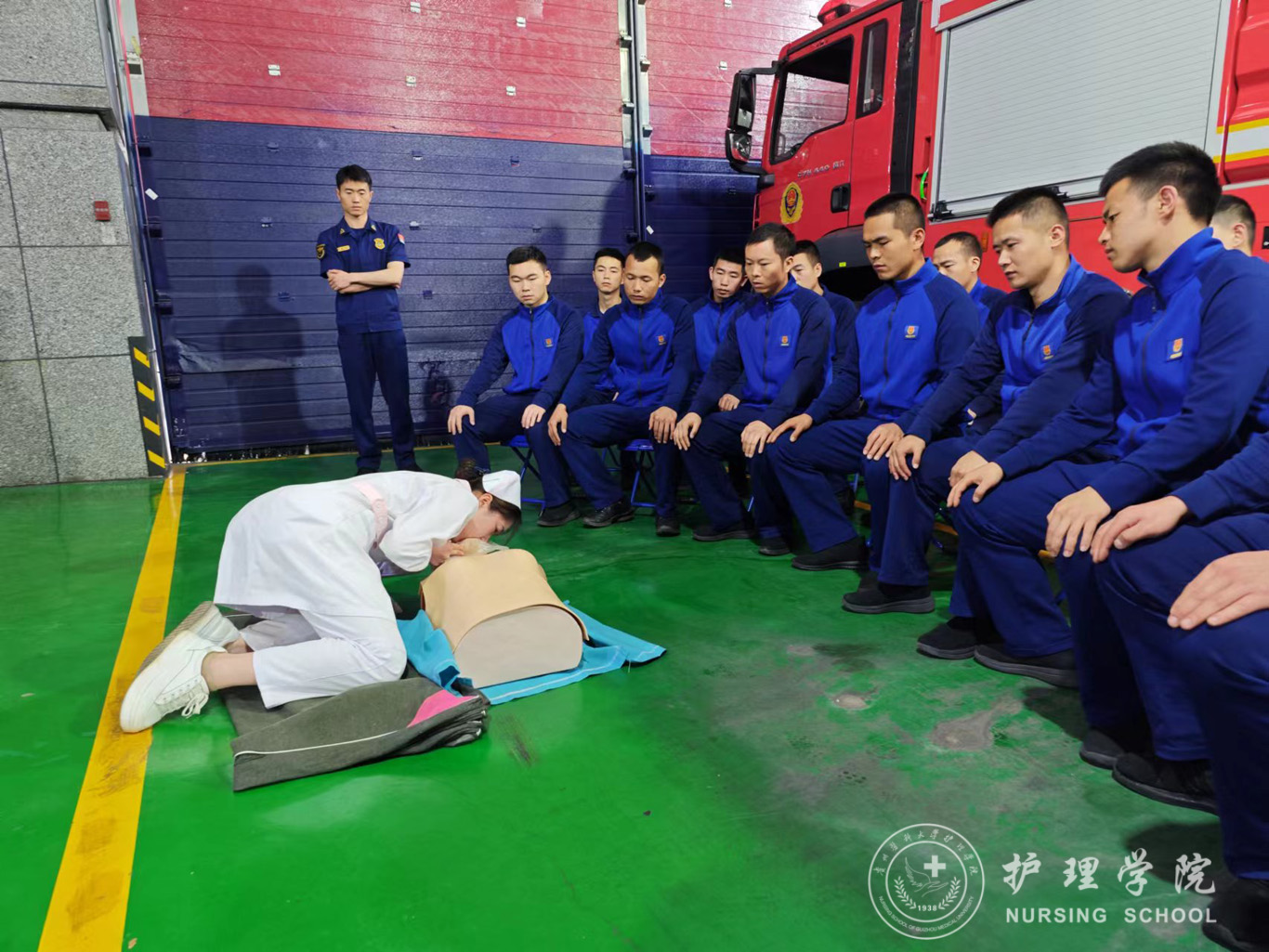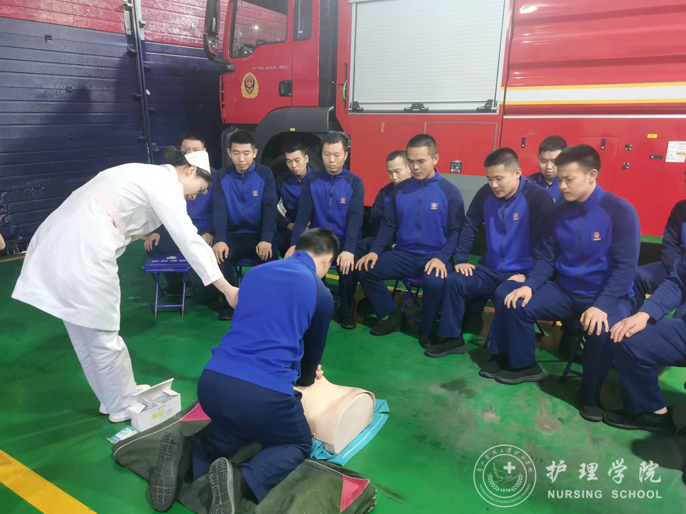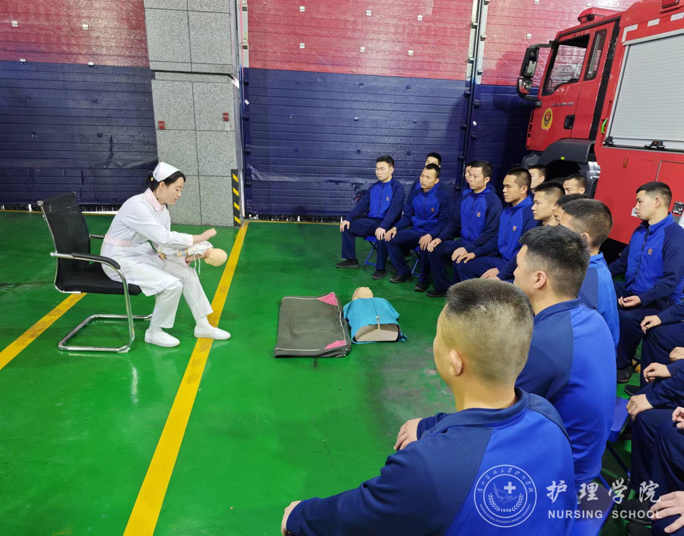 4月24日下午,为进一步科普急救知识和提高应急救援队伍的急救能力,加强警医联动,allwincity万象城官方网站团委副书记王晓玲带队前往贵阳市云岩区贵开路消防救援站开展了急救技能培训活动。