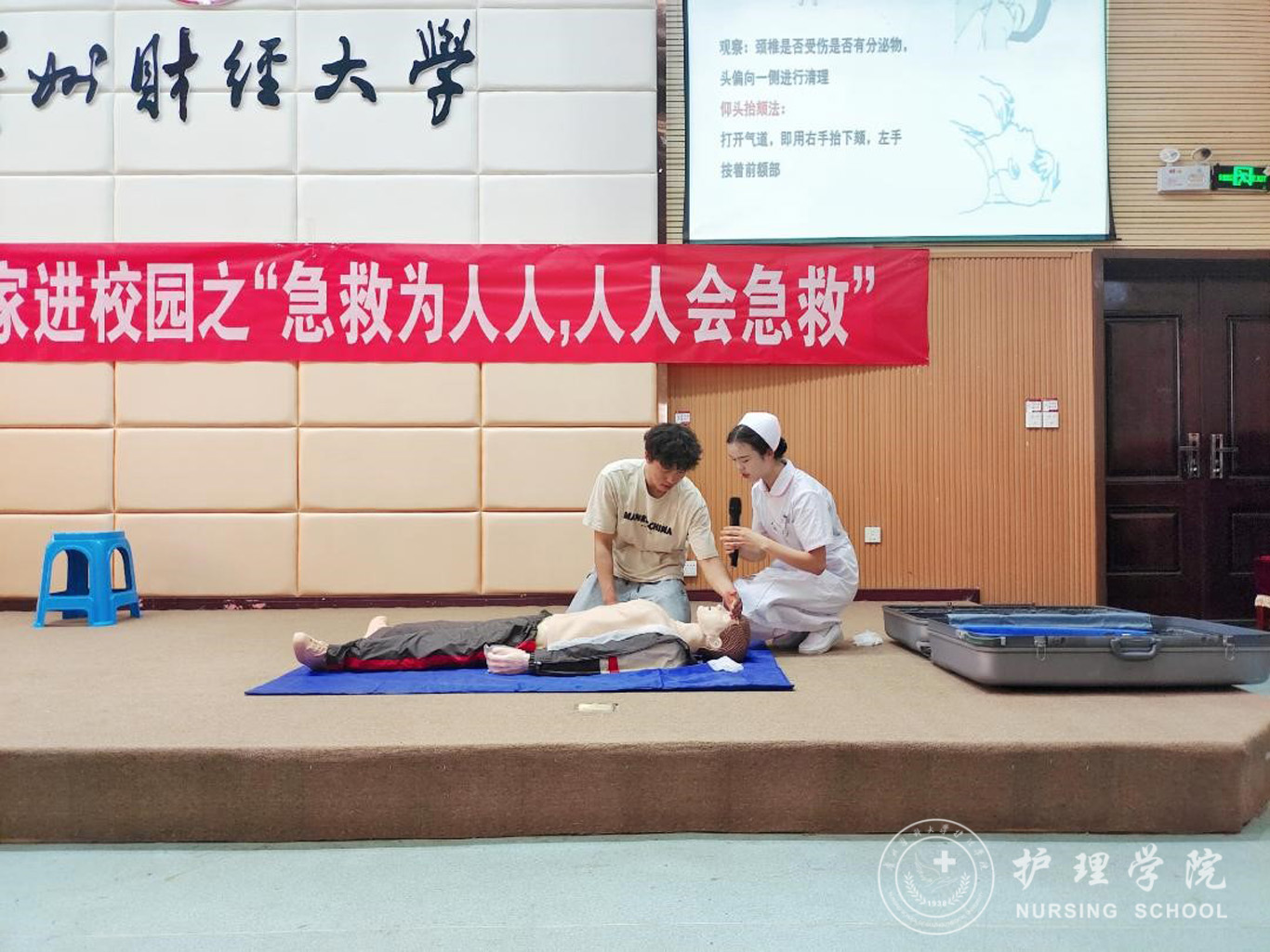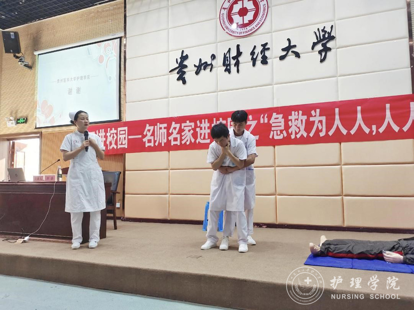 为普及应急救护知识,进一步增强大学生应对突发事件的互救和自救能力,提升公众应急救护技能水平。6月2日,allwincity万象城官方网站组织师生代表前往贵州财经大学工商管理学院开展了“人人会急救,急救为人人”急救知识培训活动。allwincity万象城官方网站教职工党支部书记、护理人文教研室副主任张仁莉,学院团委副书记王晓玲,护理人文教研室教师田晶以及护理技能协会代表参与了本次培训。