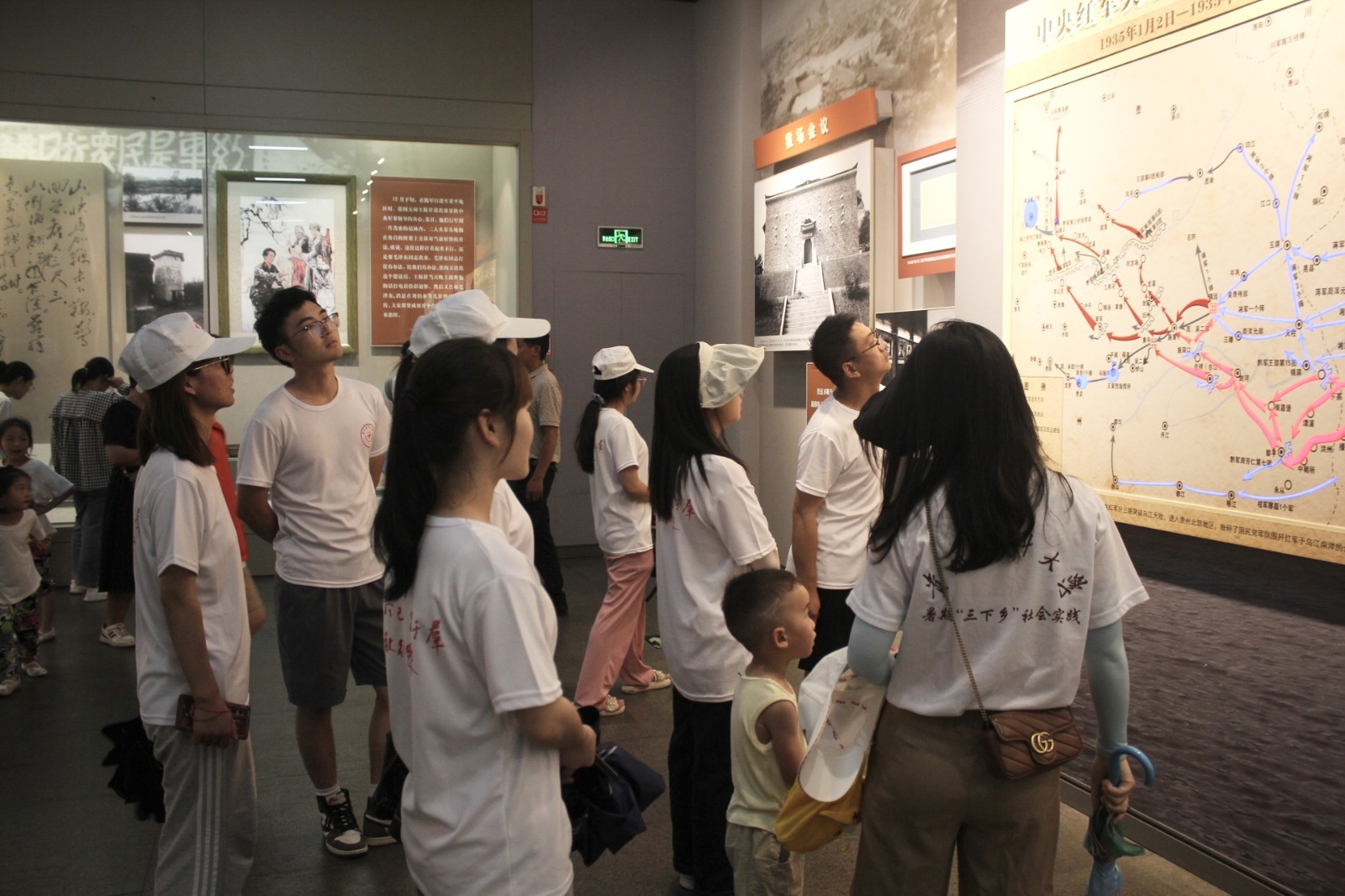 参观遵义会议会址:遵义会议会址及纪念馆是传承红色基因、弘扬长征精神和遵义会议精神的主要场所和重要阵地。实践队在会址内进行主题学习教育活动,认真观看一段段鲜活的历史故事,一幕幕英勇斗争的场景。