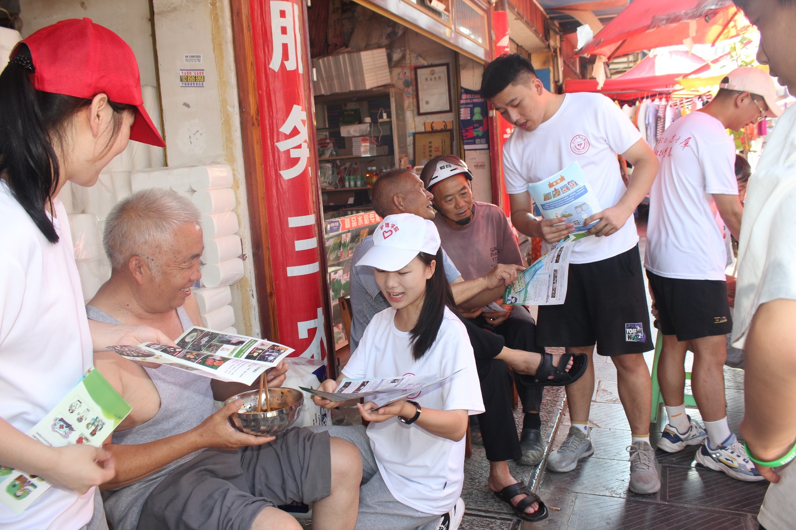 健康问诊:实践服务队成员们将专业知识与技能实操有效衔接,以免费测量血压为主项目,延伸开展了老年人健康现状调研、急救知识普及、禁毒防艾政策宣讲等活动。