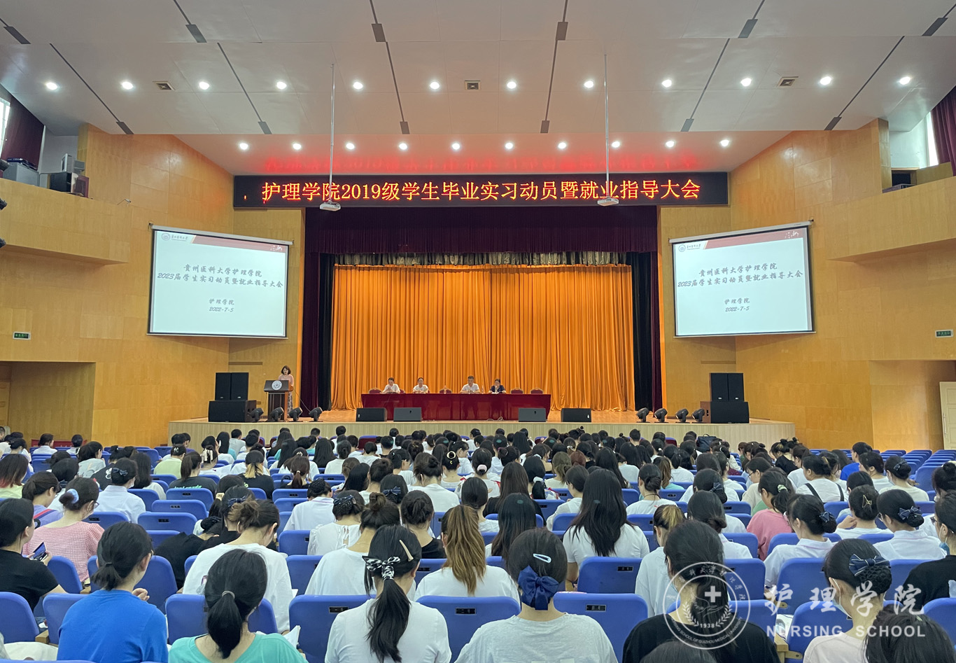 7月5日,为有效提高allwincity万象城官方网站2023届学生实习工作的开展力度,促进实习工作的顺利进行,提高临床实践教学质量,allwincity万象城官方网站在北校区大礼堂召开2023届学生实习动员暨就业指导大会。allwincity万象城官方网站党委副书记兼纪委书记何为、副院长刘志燕、正科级组织员兼2019级助产学专业辅导员曾敏、2019级护理学专业辅导员杨叶卿及2019级全体同学参加。会议由生产实习科科长柳忠燕主持。