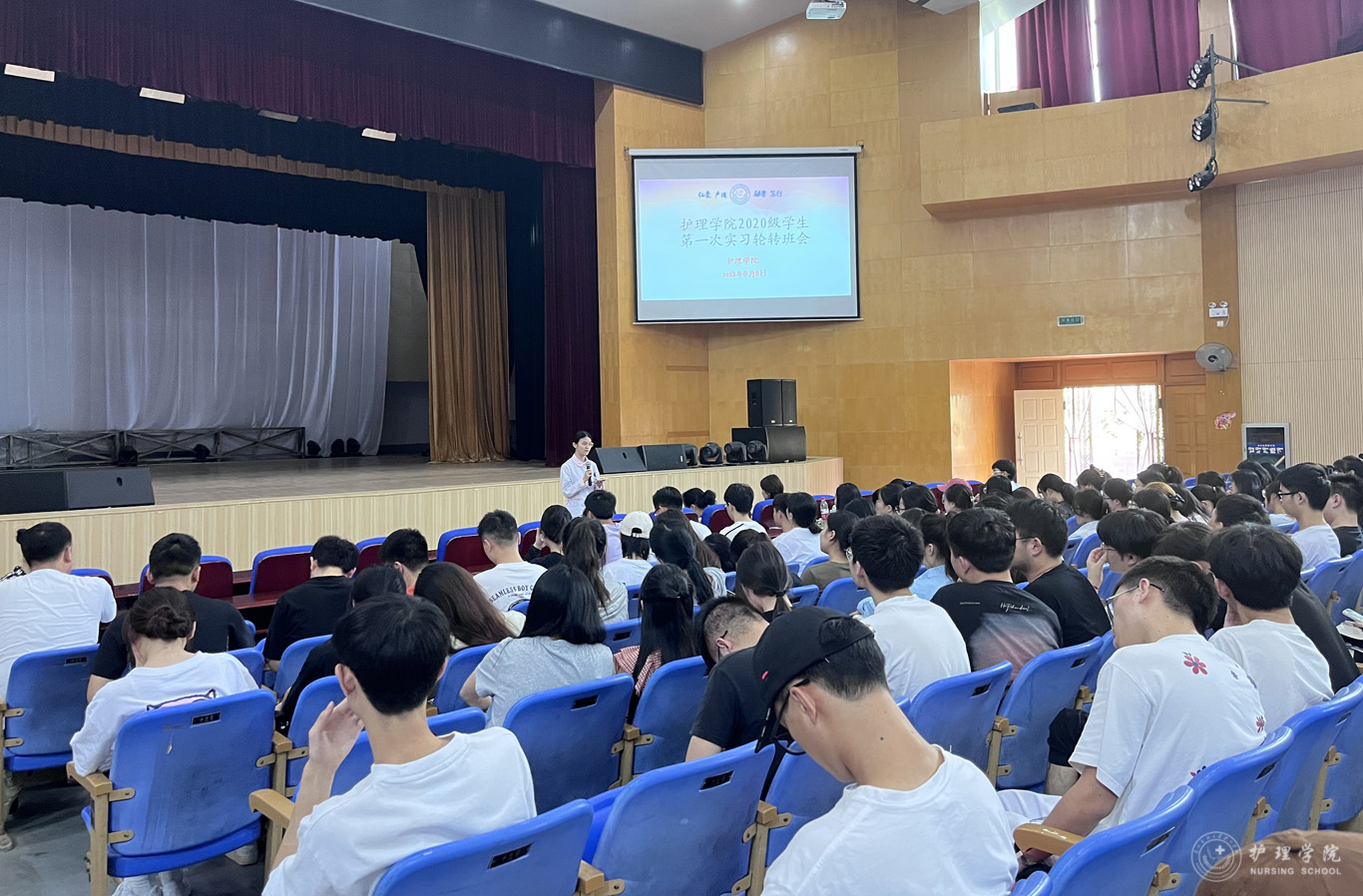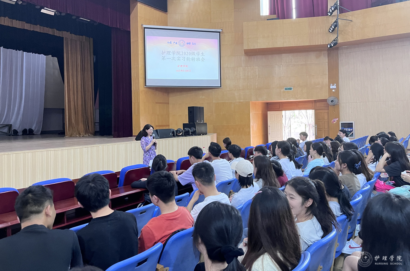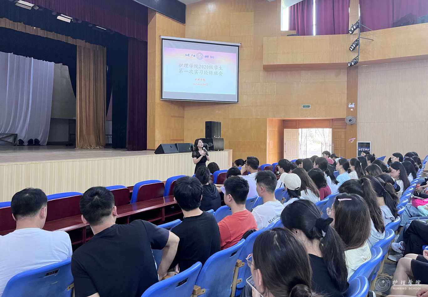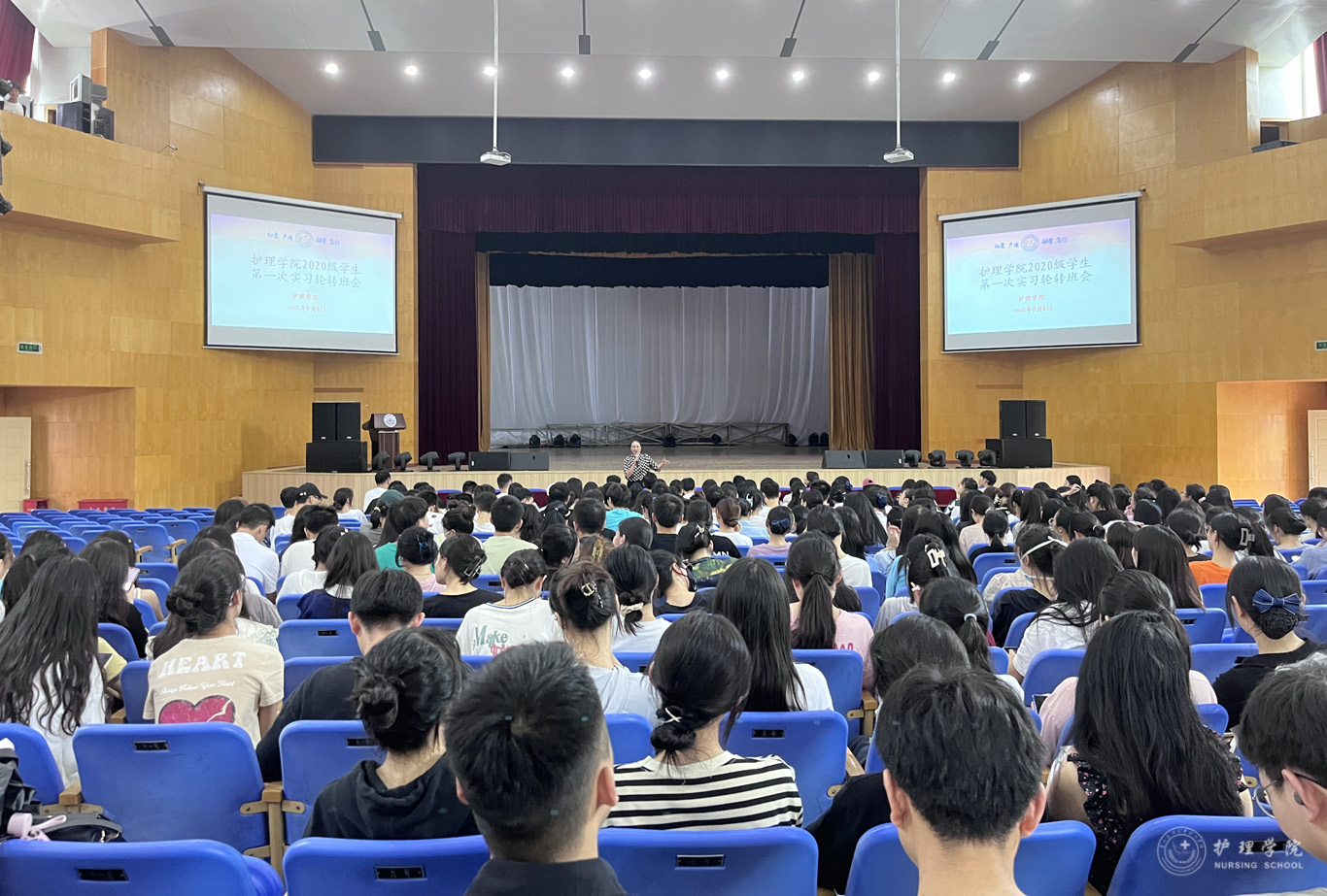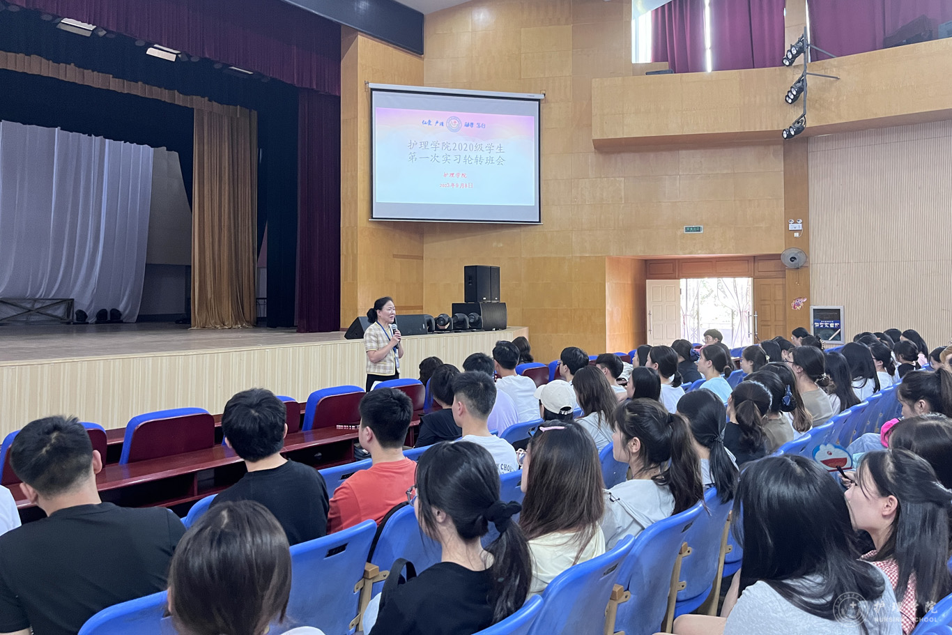 9月8日,allwincity万象城官方网站在北校区礼堂召开2024届(2020级)毕业实习轮转会。allwincity万象城官方网站院长李亚玲、副院长刘志燕、副处级组织员张黎、学生科副科长毕丽、辅导员刘妍以及全体2020级学生参加线下线上会议。会议由生产实习科科长柳忠燕主持。